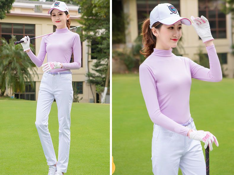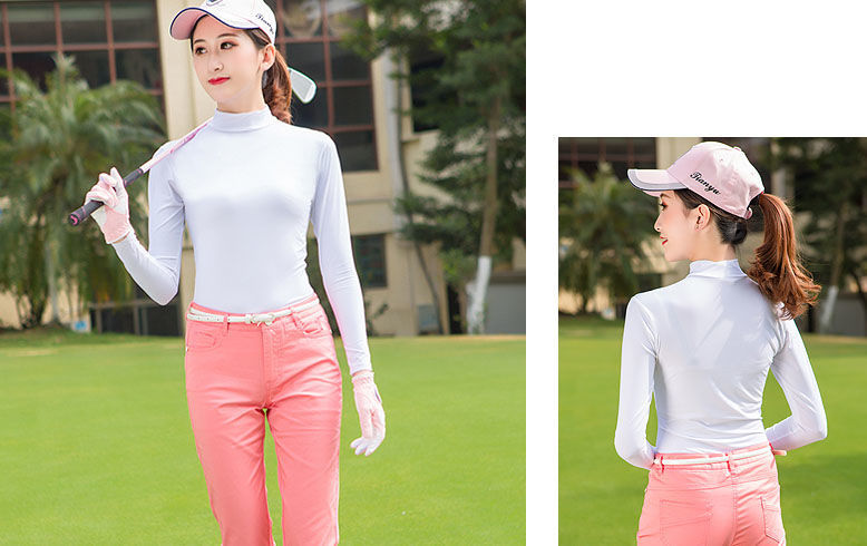 여름 골프 티셔츠 여성용 아이스 실크 긴팔 태양 보호 의류 빠른 건조 통기성 스포츠 옷 탄성 타이트베이스 셔츠스토어 가기