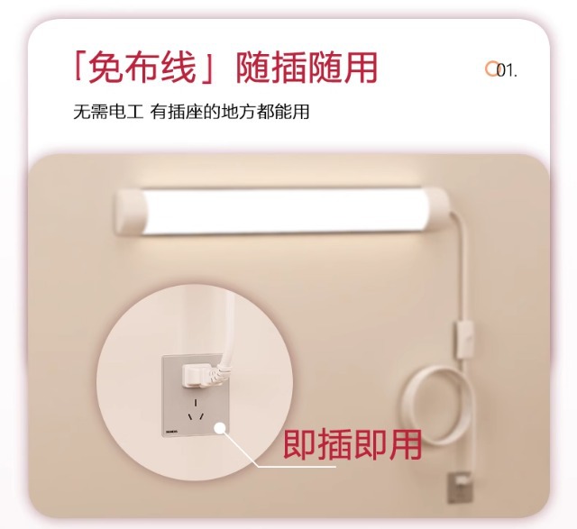LED 라이트 스트립 튜브 직접 플러그인 플러그인 기숙사 벽 실내 조명 슈퍼 밝은 설치가 필요없는 방 침실스토어 가기