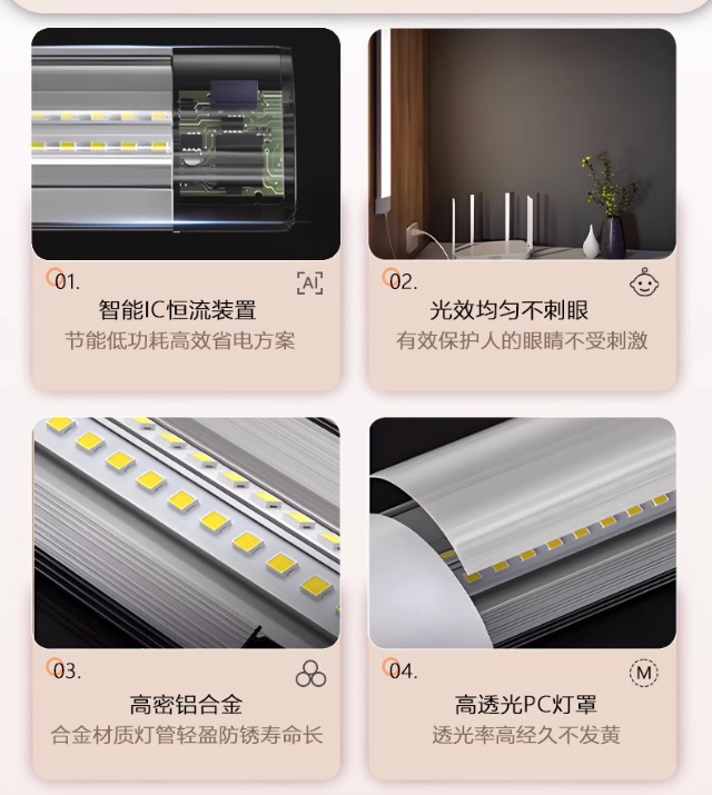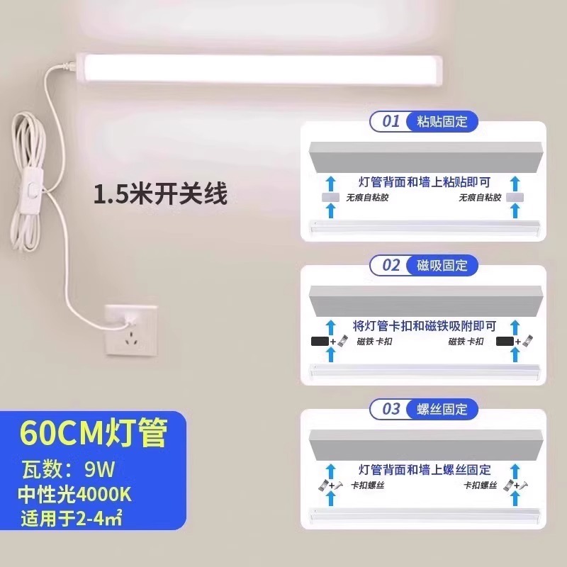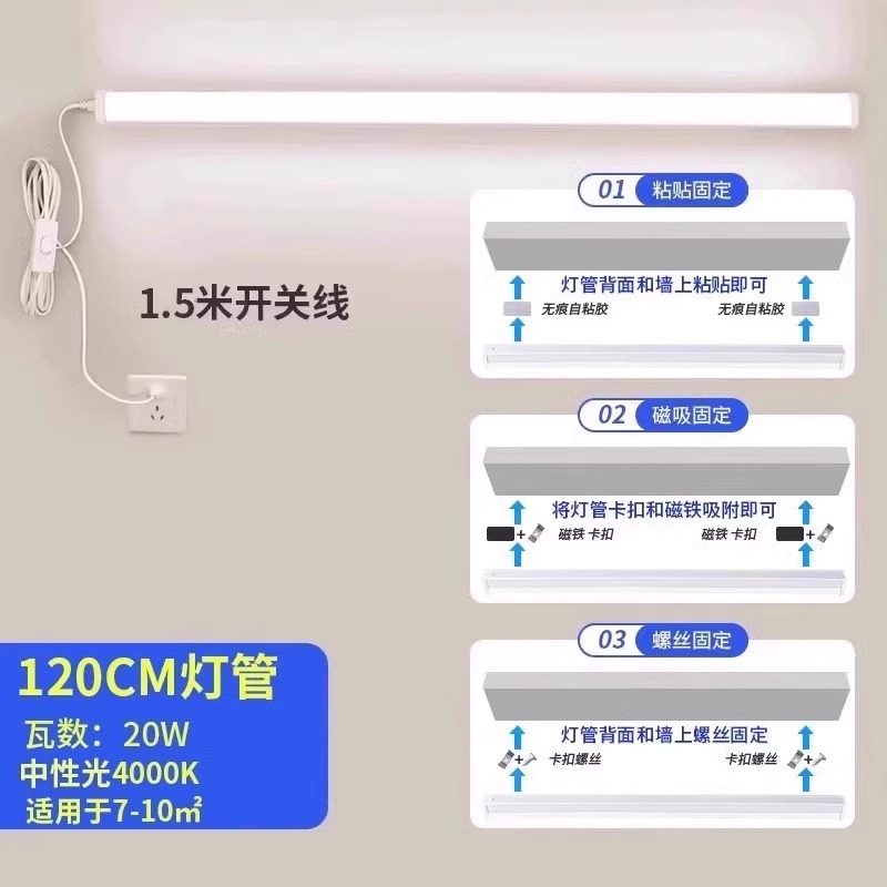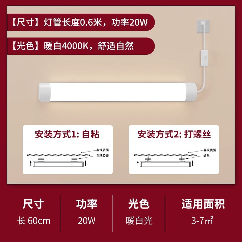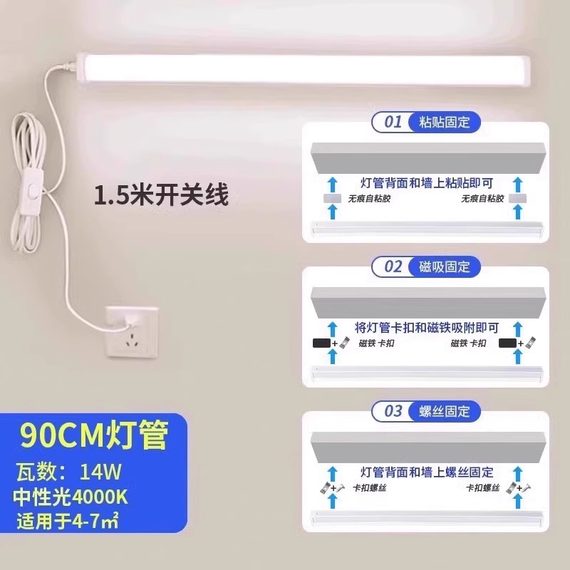 LED 라이트 스트립 튜브 직접 플러그인 플러그인 기숙사 벽 실내 조명 슈퍼 밝은 설치가 필요없는 방 침실