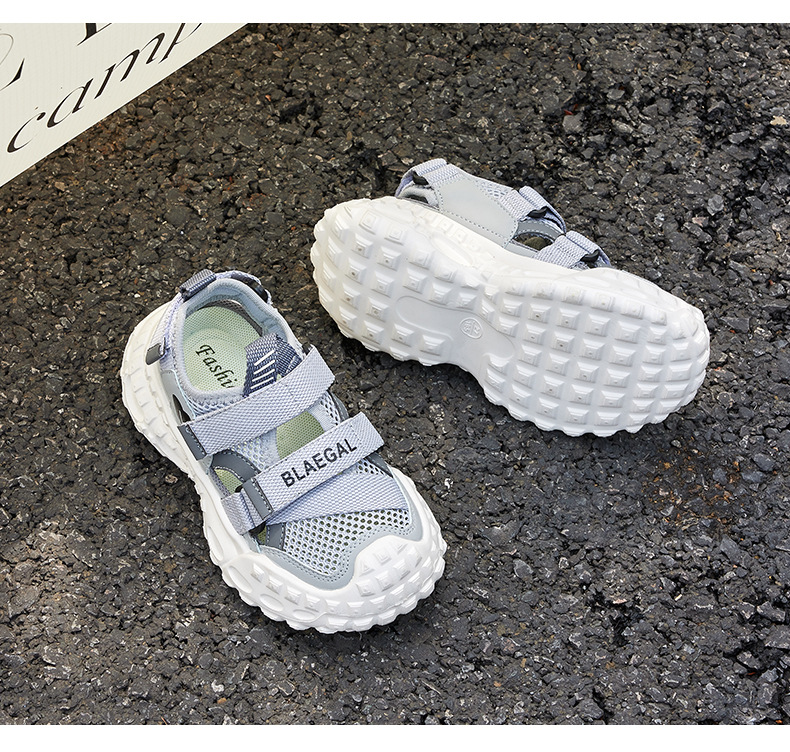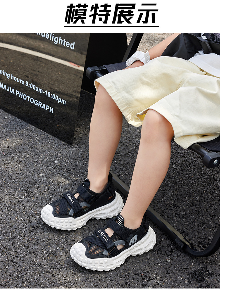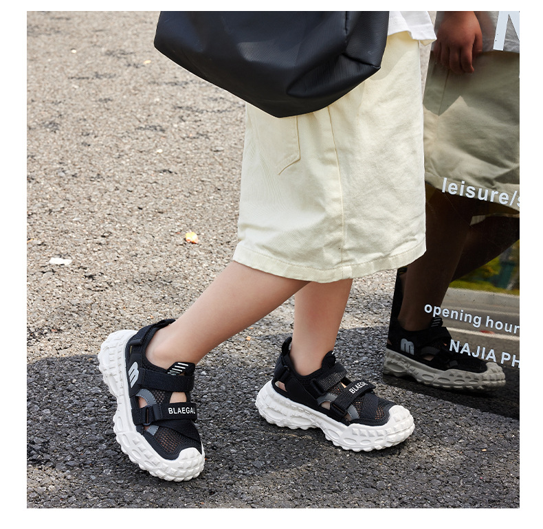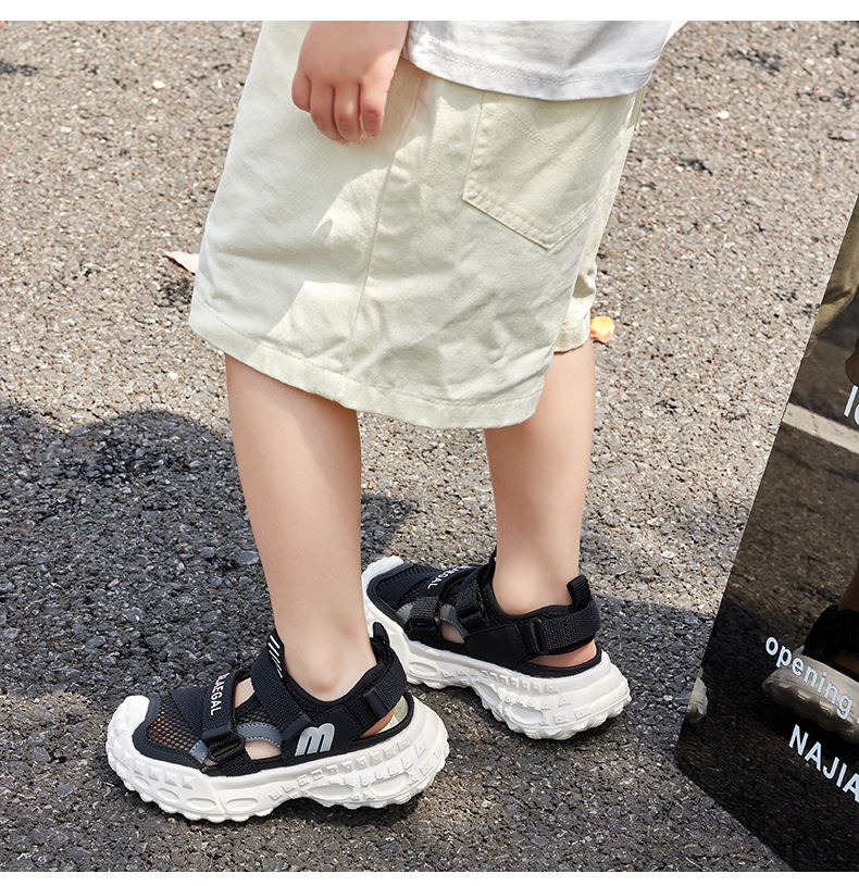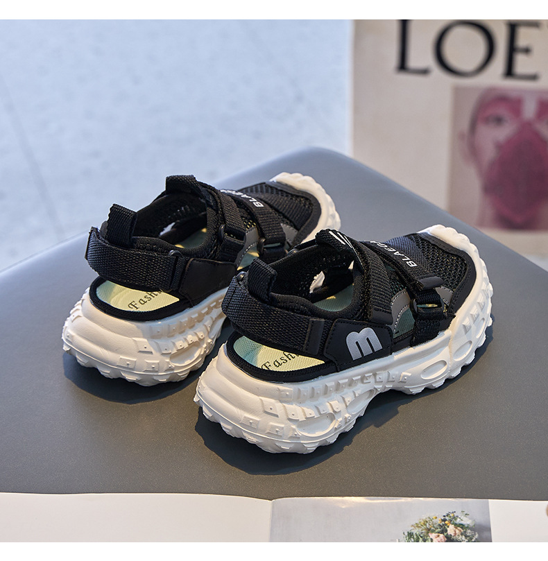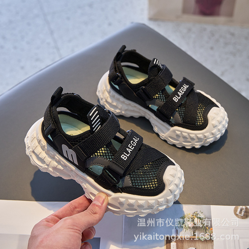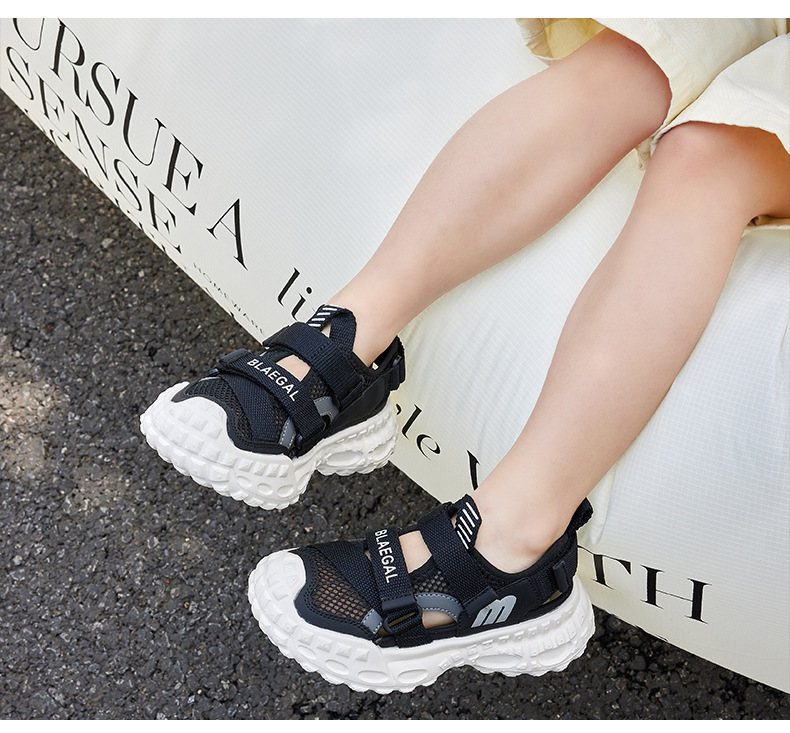 Baotou 통기성 샌들 2025 여름 새로운 어린이 소프트 솔 패션 메쉬 신발 소년 소녀 스포츠 캐주얼 신발스토어 가기