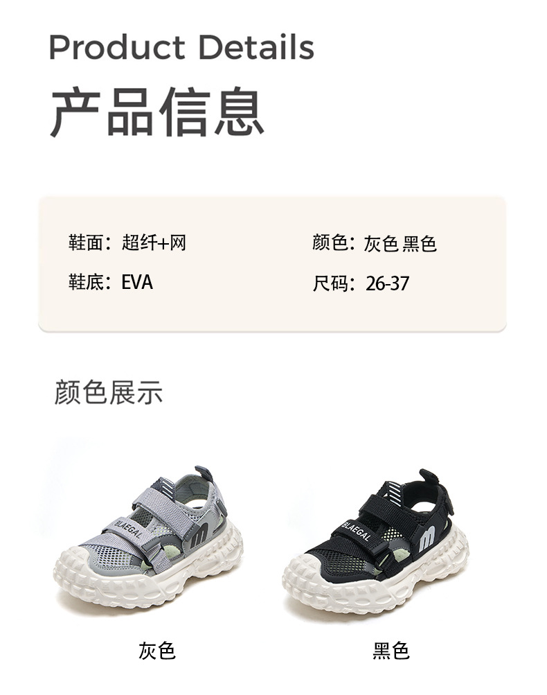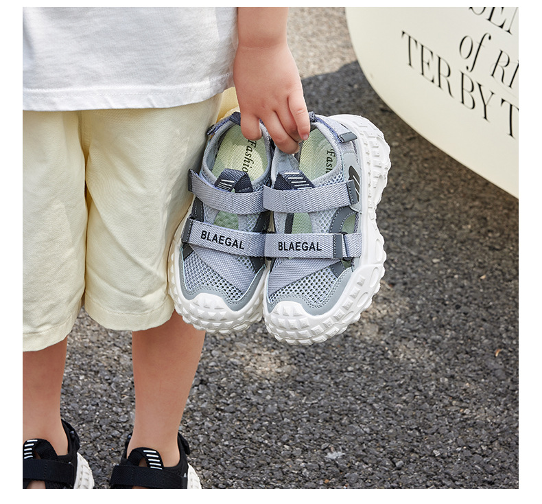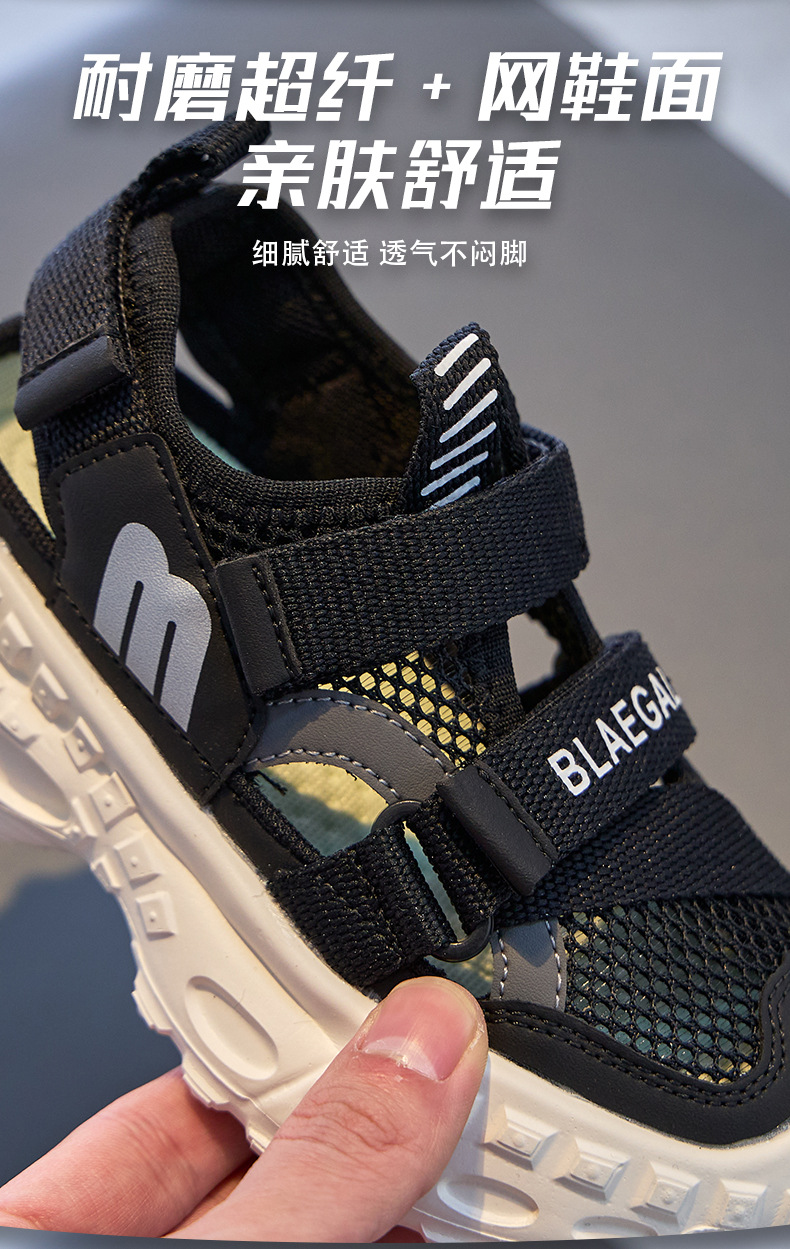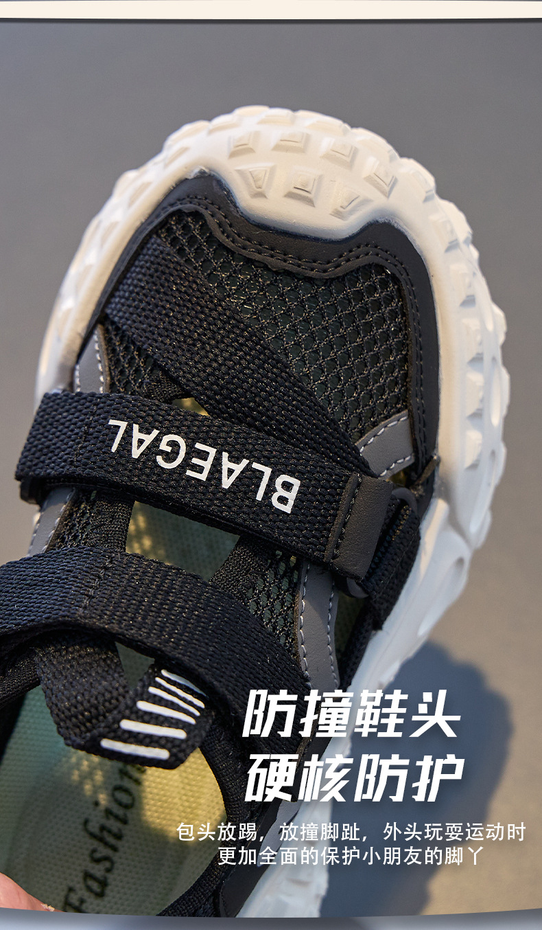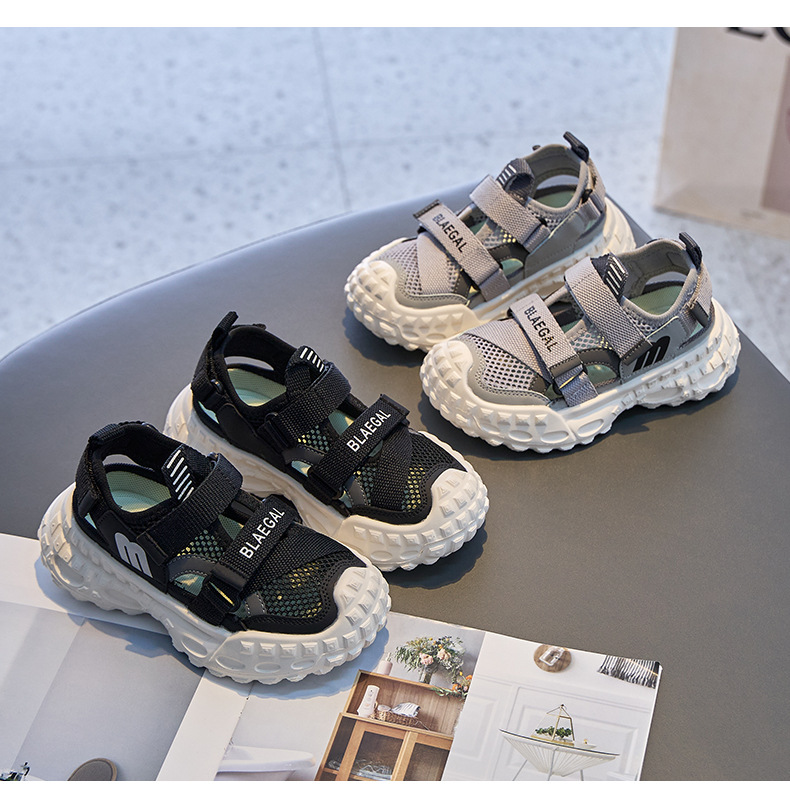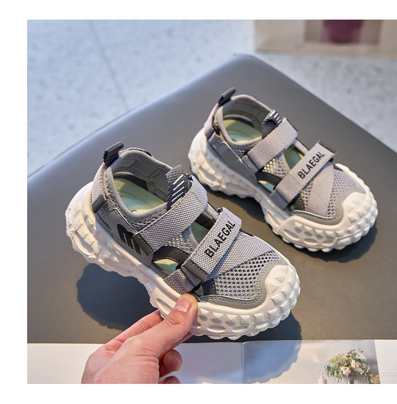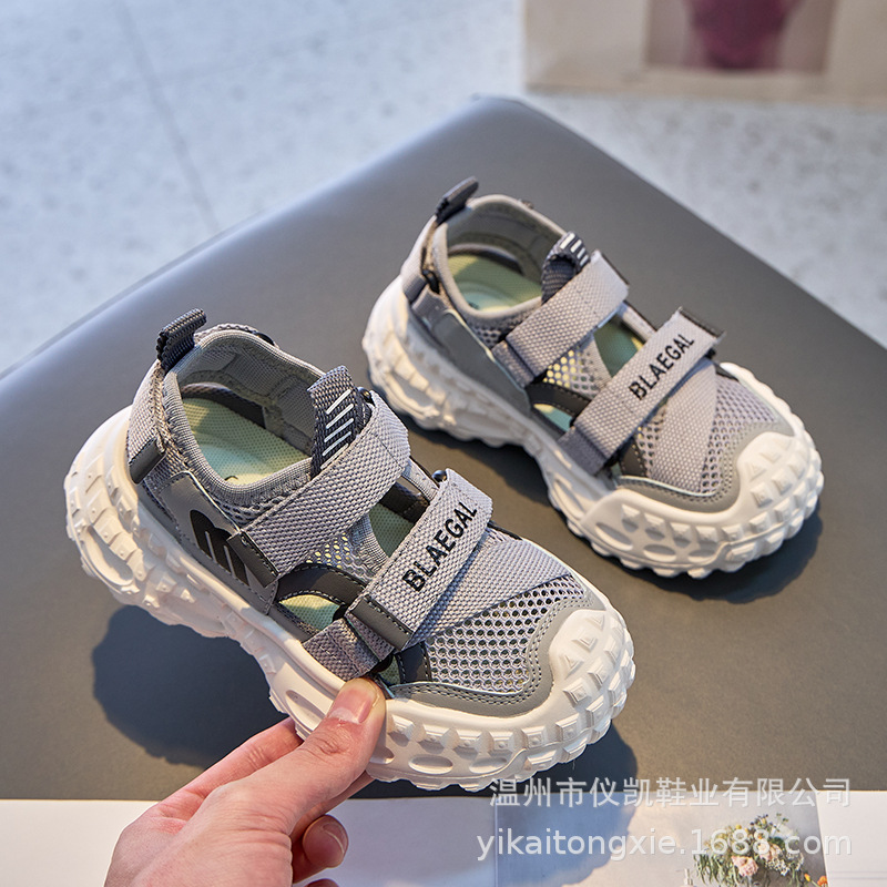 Baotou 통기성 샌들 2025 여름 새로운 어린이 소프트 솔 패션 메쉬 신발 소년 소녀 스포츠 캐주얼 신발