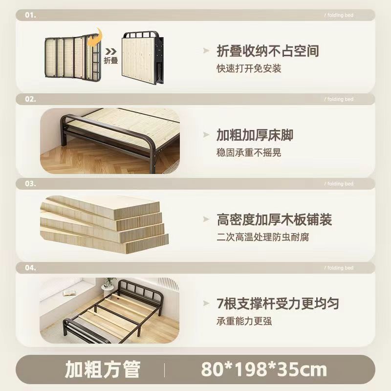 단단한 나무 싱글 접이식 침대 가정용 간단한 사무실 점심 시간 낮잠 침대 임대실 휴대용 다기능 철제 침대스토어 가기