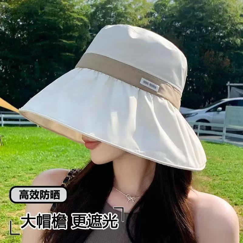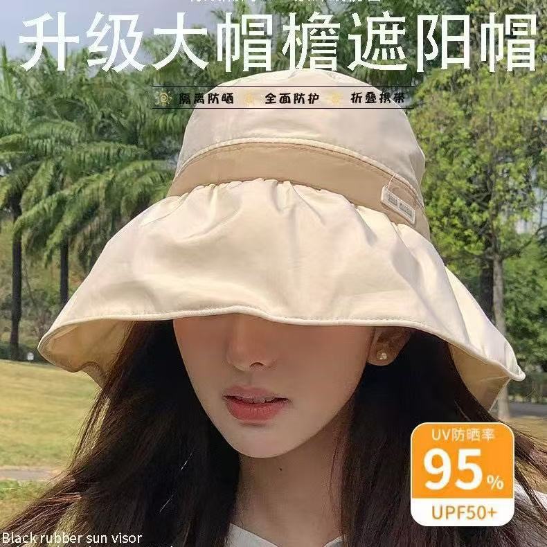 2025 새로운 일본 검은 고무 선 스크린 모자 어린이 여름 접이식 대형 브림 자외선 보호 태양 모자스토어 가기