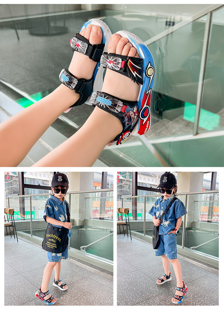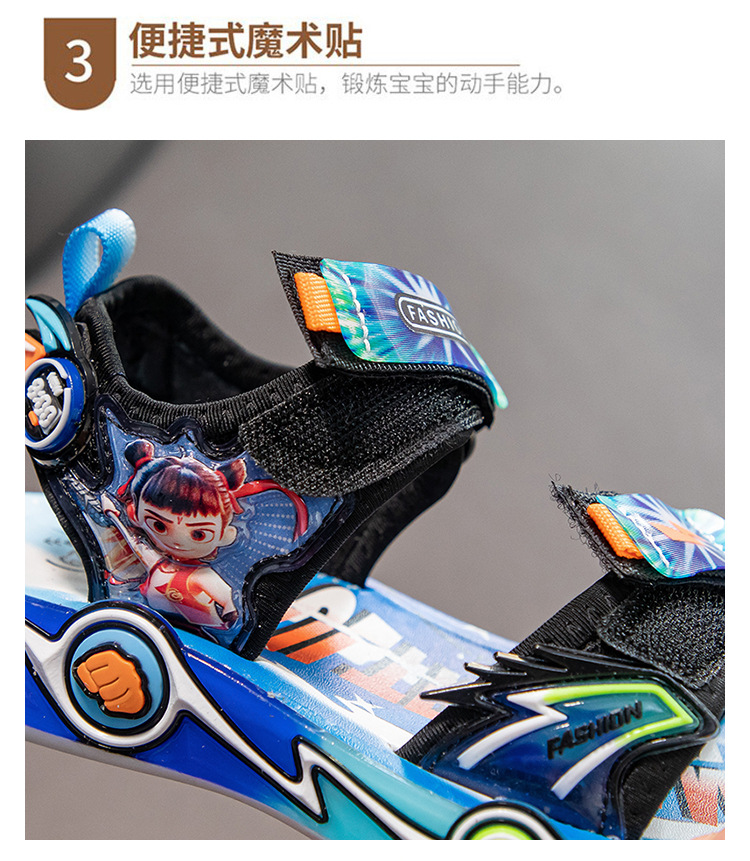 Nezha 어린이 소년 샌들 2025 여름 새로운 대형 어린이 부드러운 바닥 작은 소년 신발 비치 슈즈 6-12 세스토어 가기