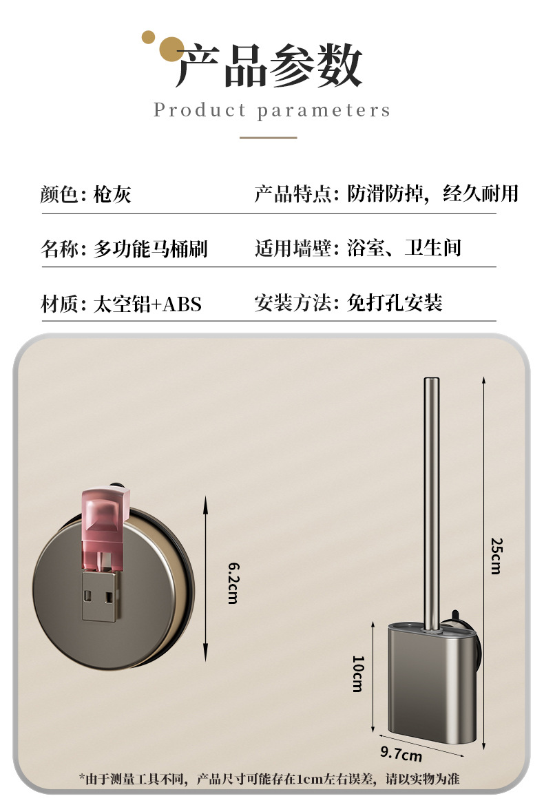• 건 그레이 흡입 컵 실리콘 변기 브러쉬 싱글