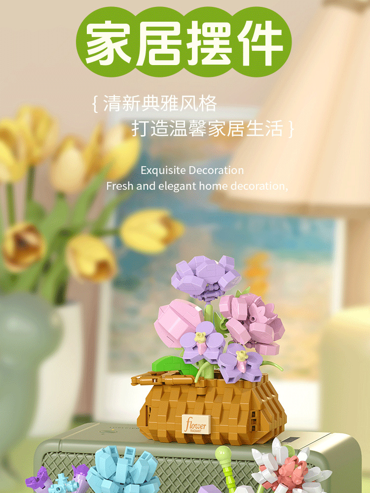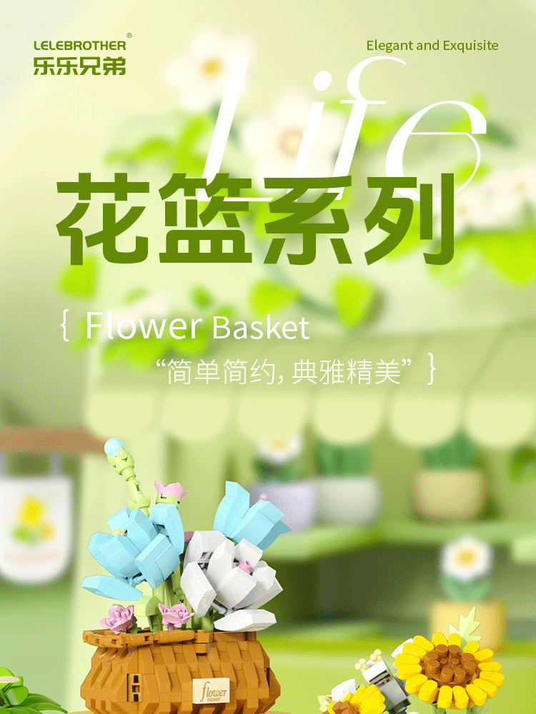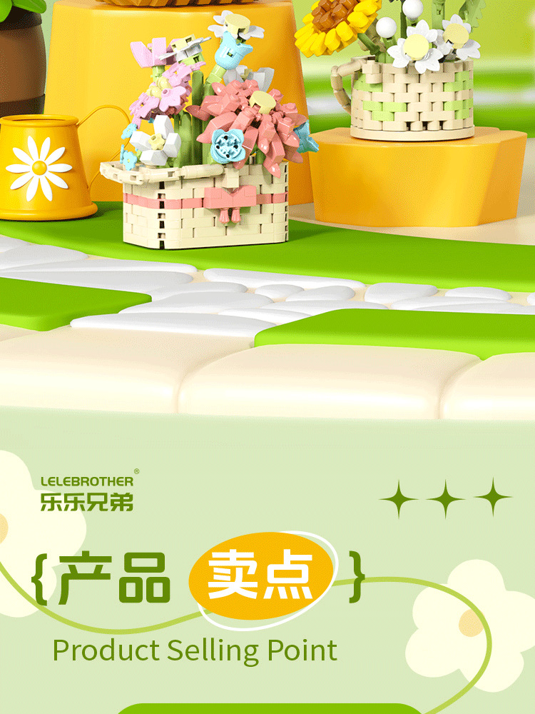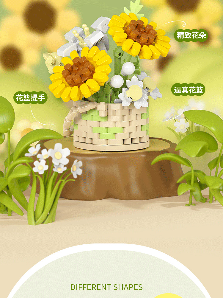 Lele Brothers 어린이 교육용 블록 조립 마이크로 입자 모델 해바라기 꽃바구니 소년 장난감 소녀 선물스토어 가기