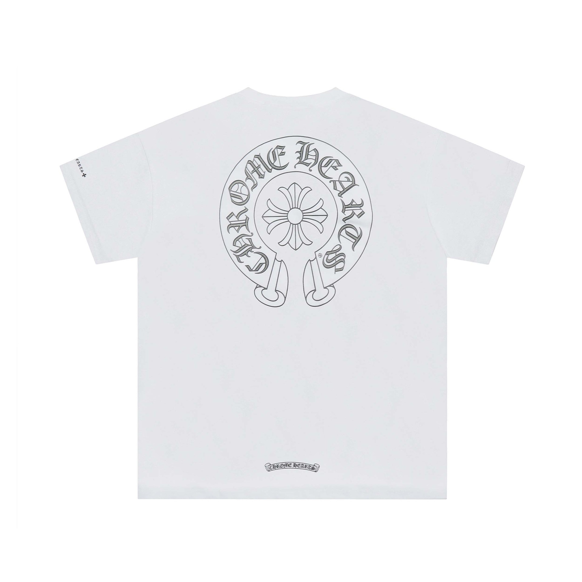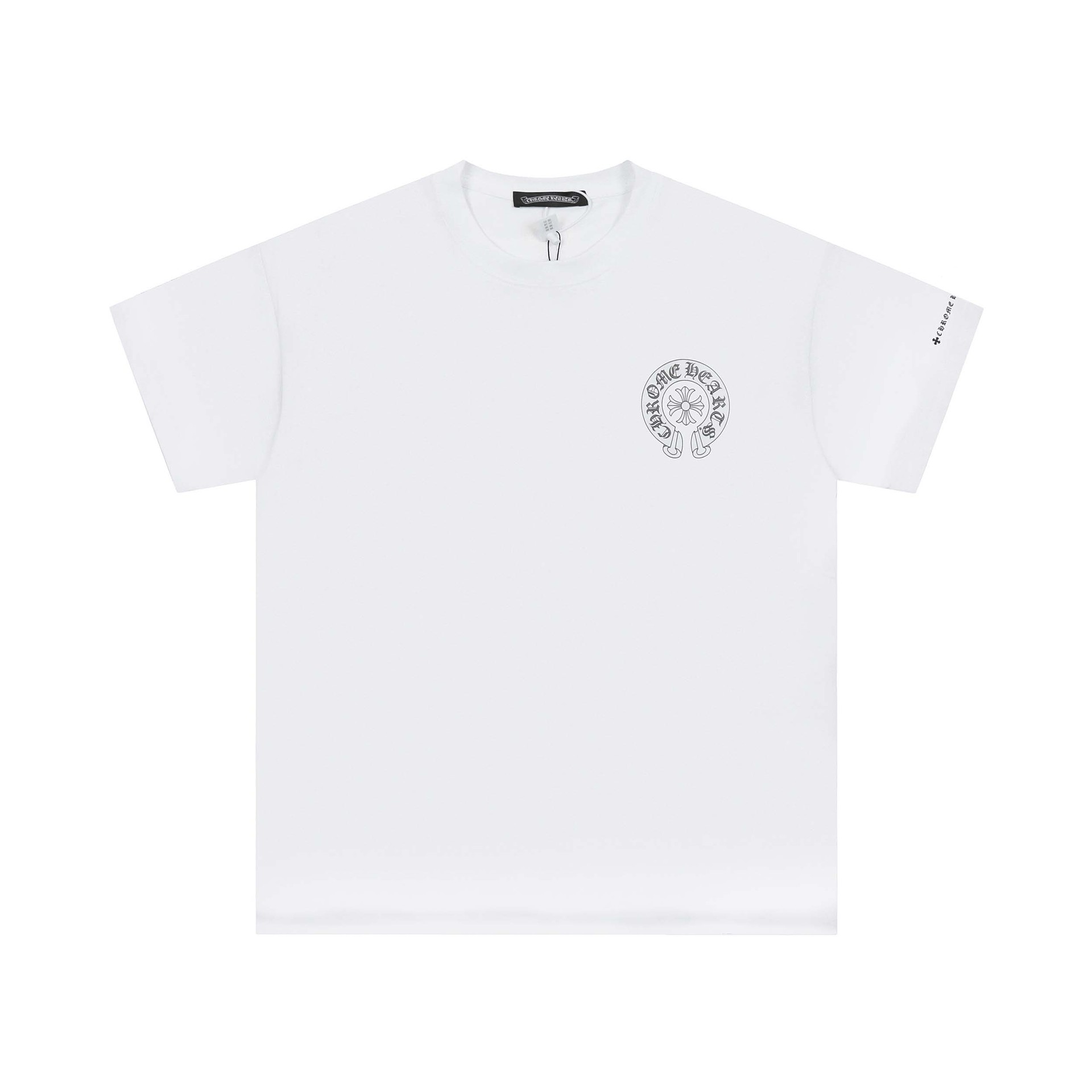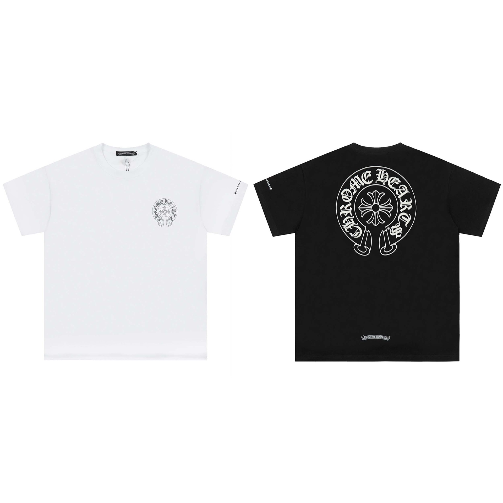 크로스-국경 하이 버전 CH 까마귀 크로스 말굽 프린트 산스크리트어 프린트 남성과 여성을위한 짧은 소매 티셔츠스토어 가기