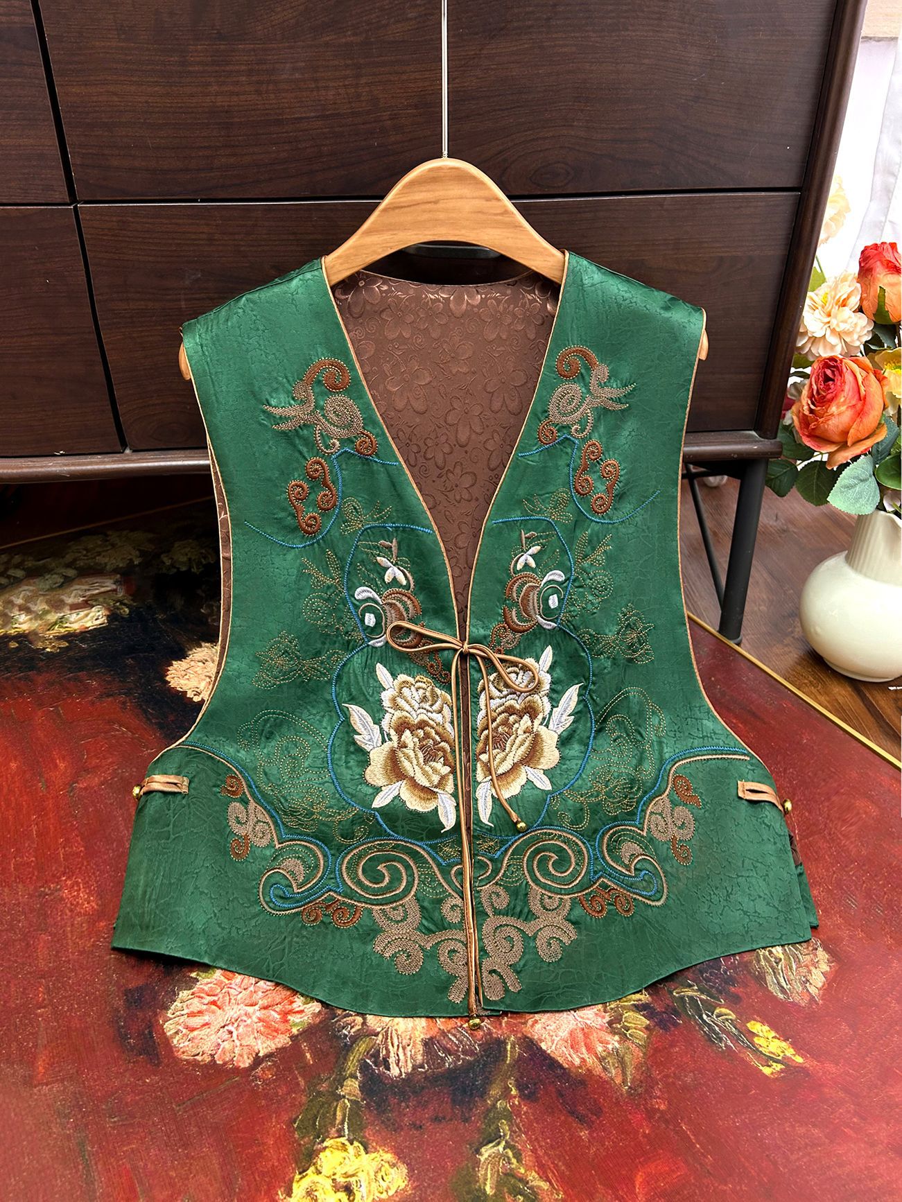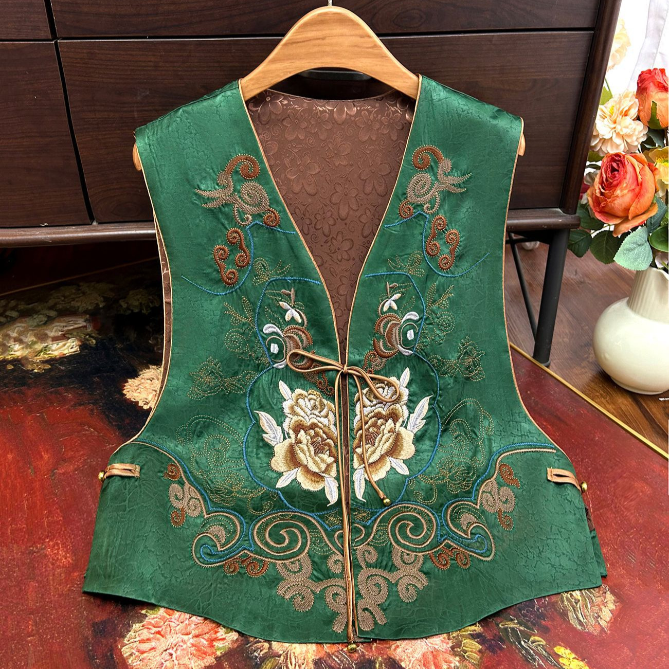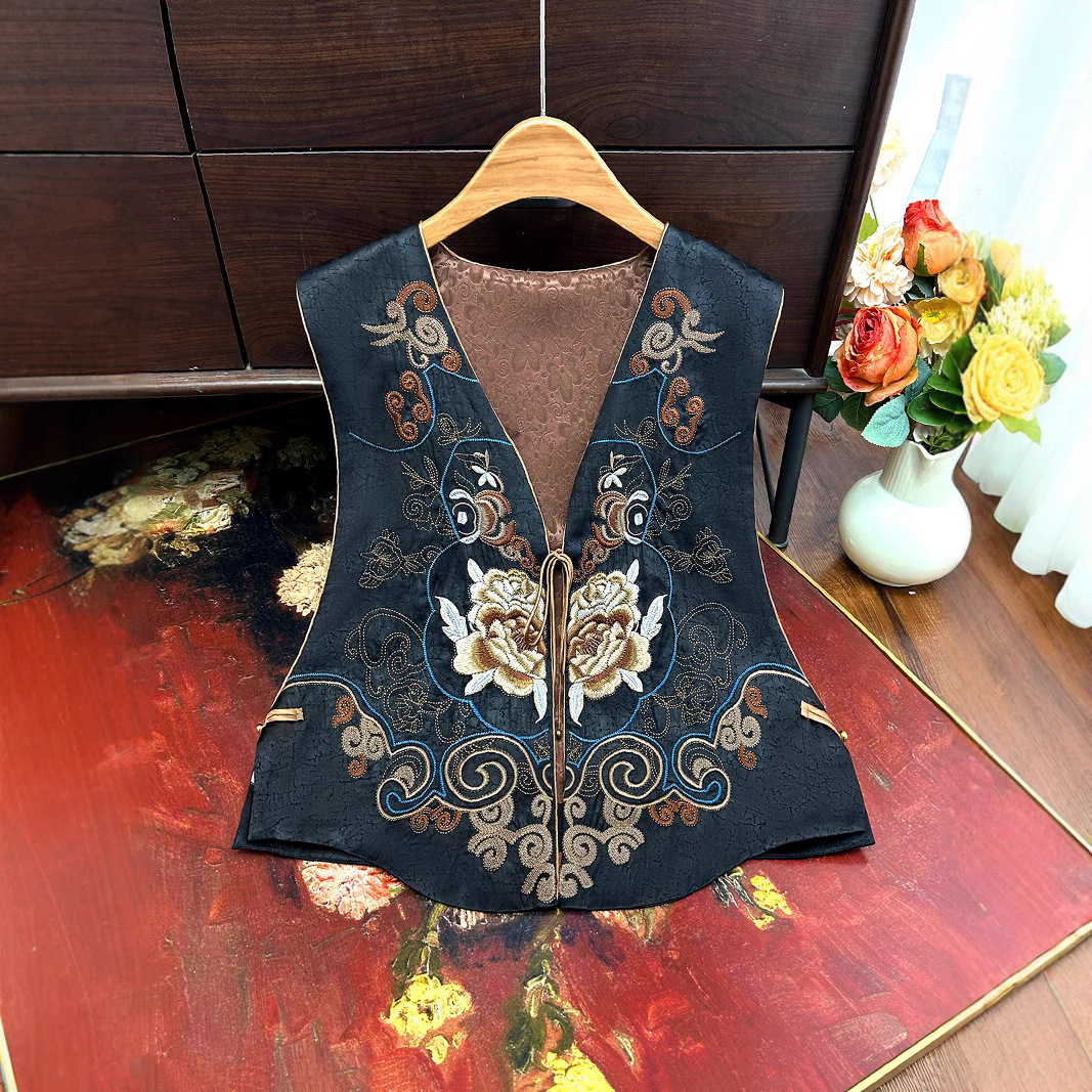 새로운 중국 스타일 중공업 수놓은 술 국립 스타일 조끼 여성의 2025 봄 새로운 복고풍 우아한 느슨한 조끼스토어 가기
