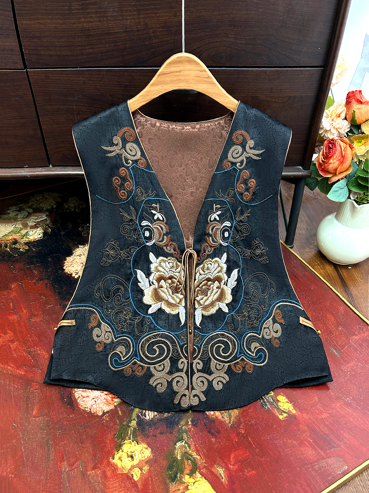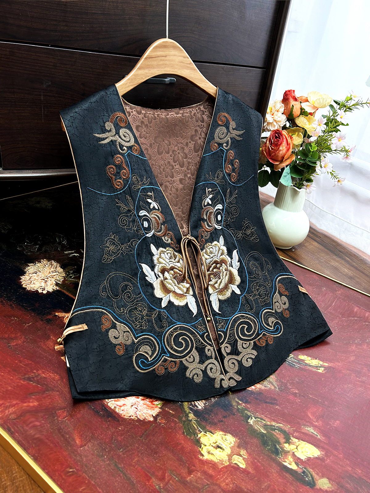 새로운 중국 스타일 중공업 수놓은 술 국립 스타일 조끼 여성의 2025 봄 새로운 복고풍 우아한 느슨한 조끼