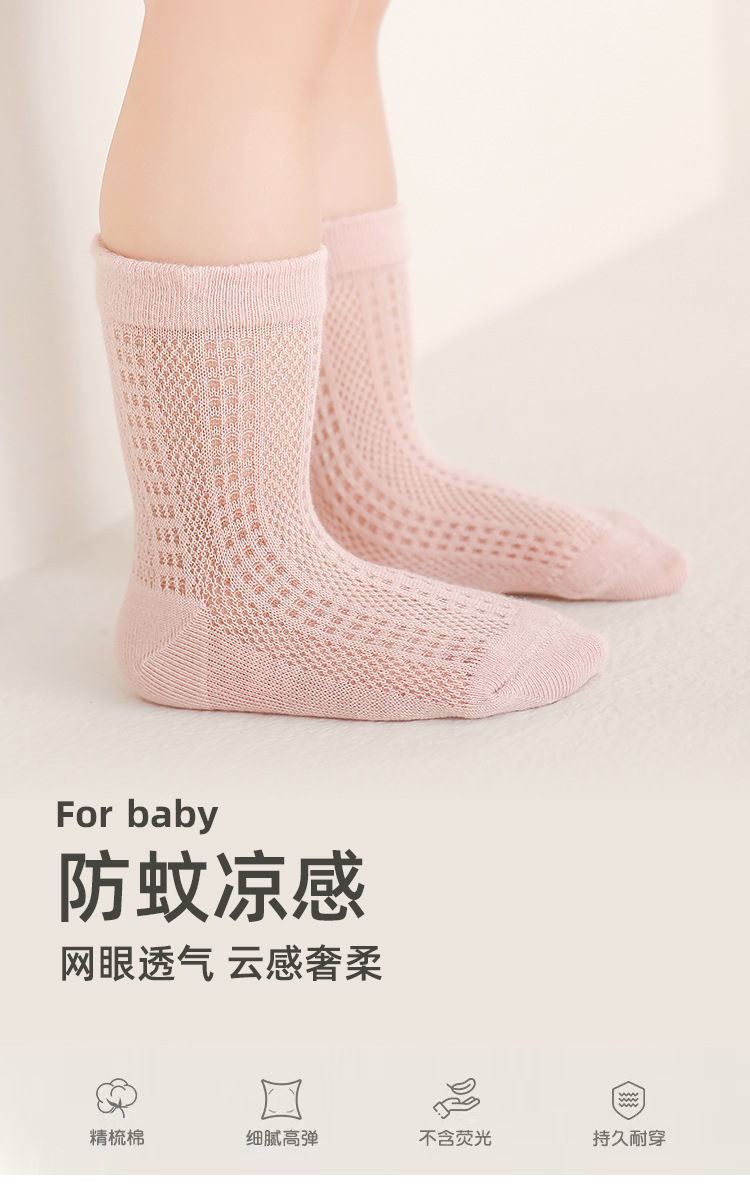 어린이 양말 2025 여름 얇은 뼈없는 클래스 A 소년과 소녀 중간 튜브 양말 아기 중공 메쉬 양말 모기 방지 양말스토어 가기