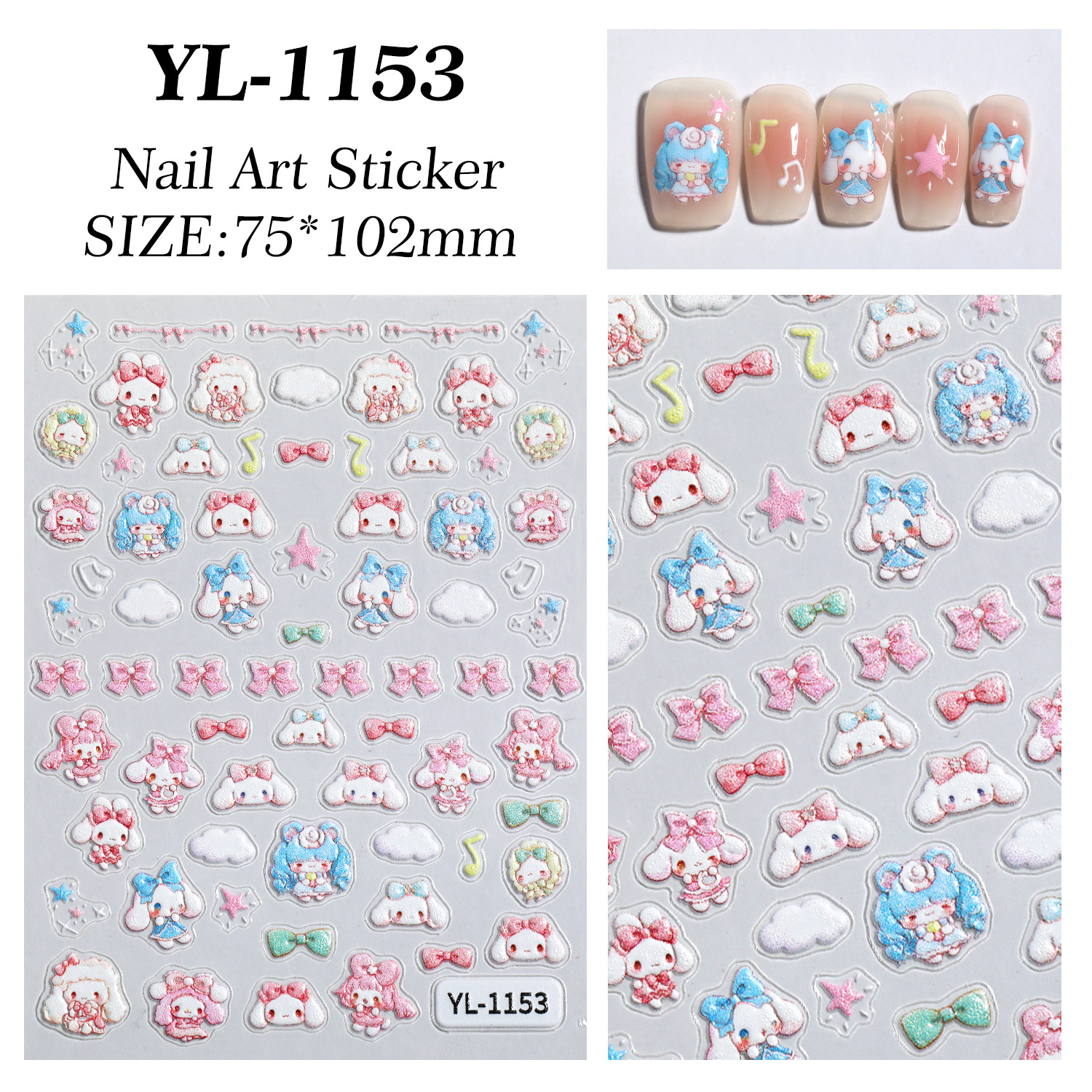 귀여운 처진 귀 토끼 네일 스티커 5D 양각 입체 소녀 하트 긴 귀 토끼 네일 아트 스티커 쥬얼리 YL 스타일스토어 가기