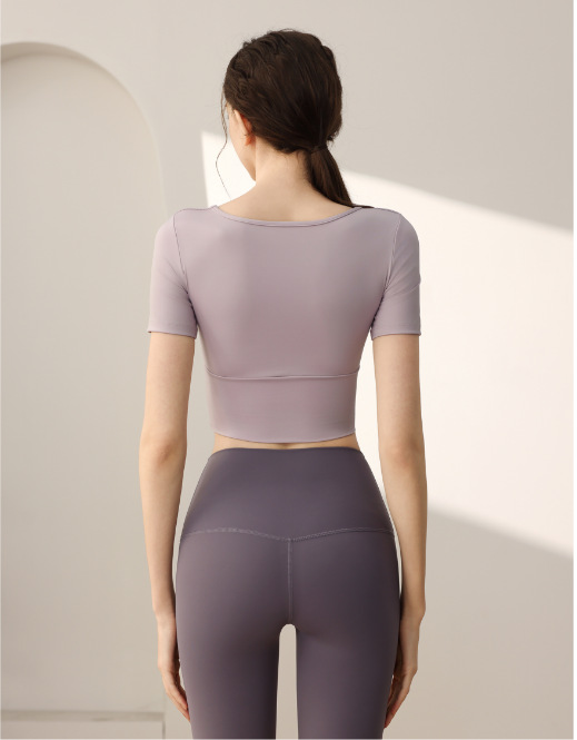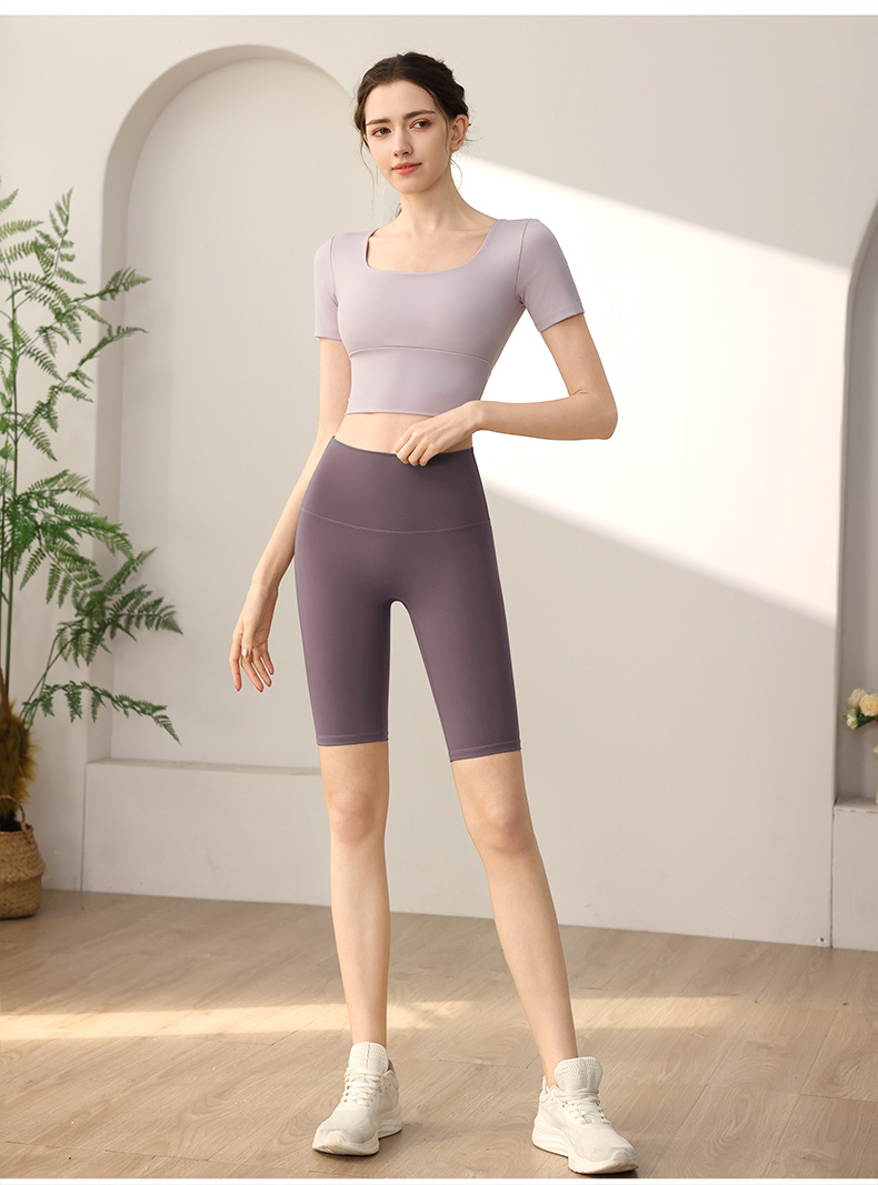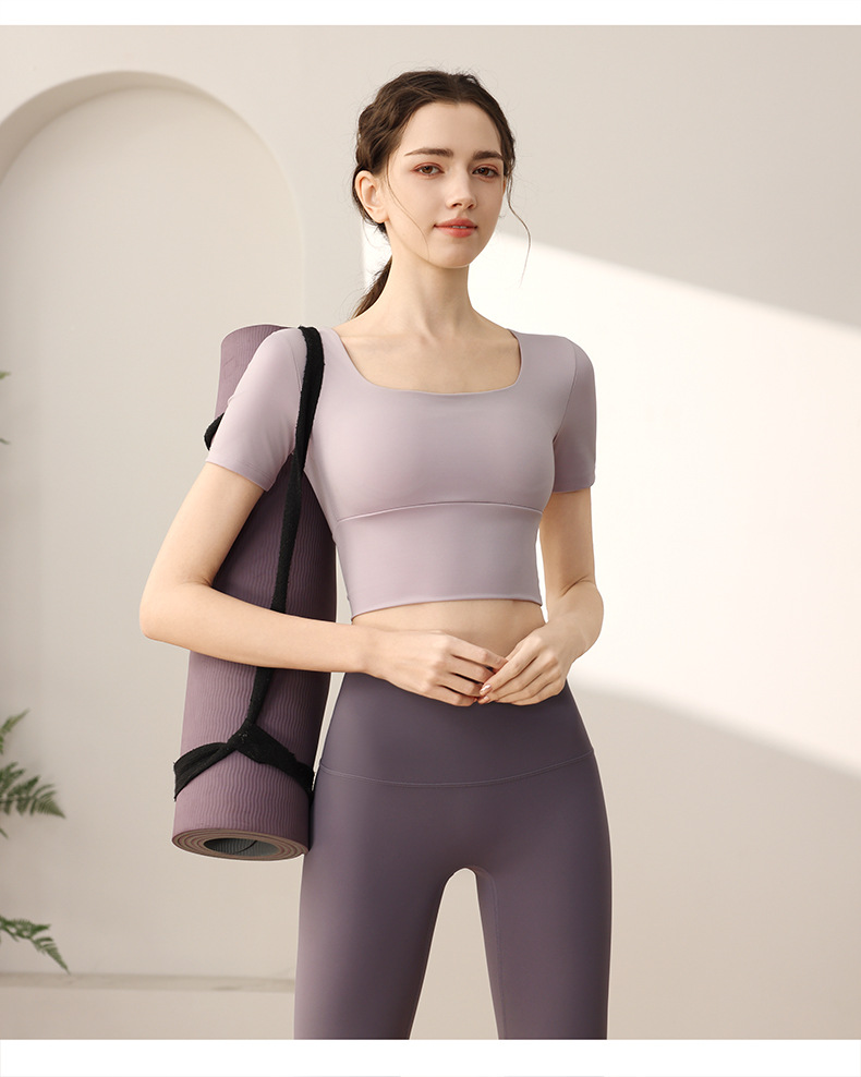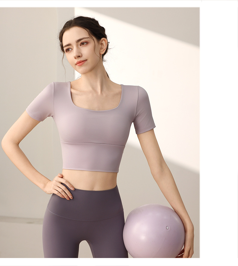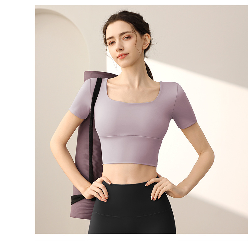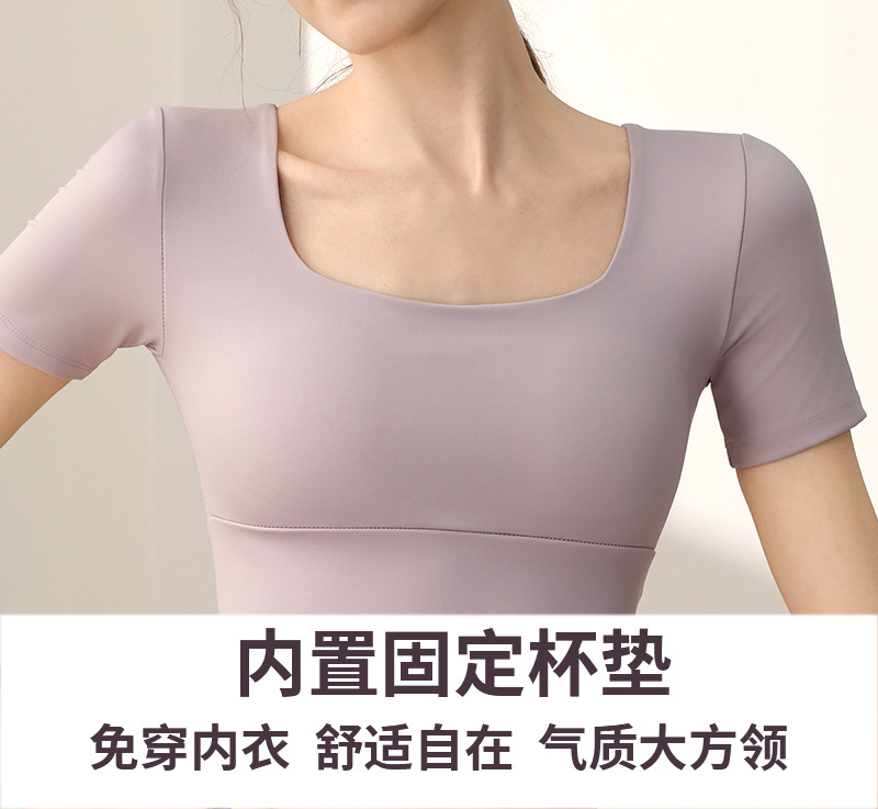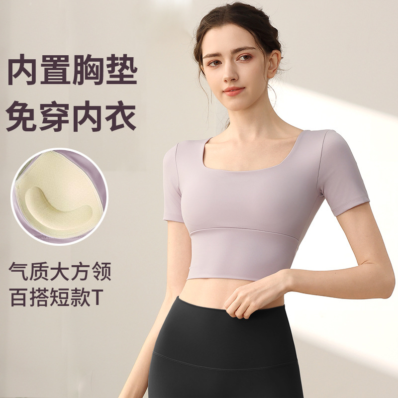 요가 의류 가슴 패드가 달린 반소매 슬림 핏 슬리밍 스포츠 최고급 우아한 반팔 티셔츠 여름 여성을위한 피트니스 의류스토어 가기