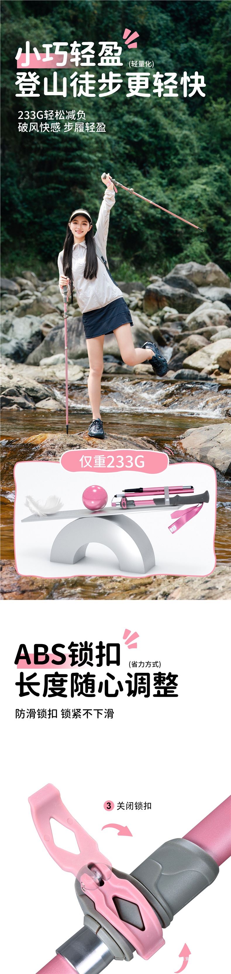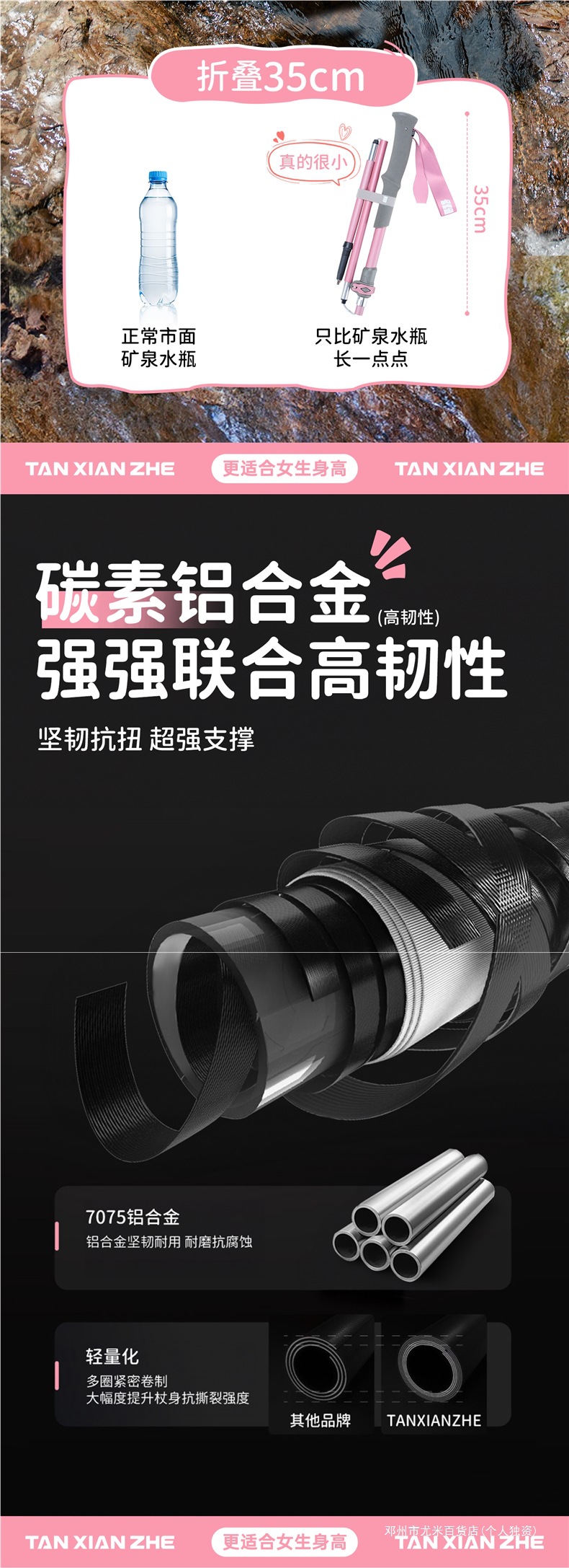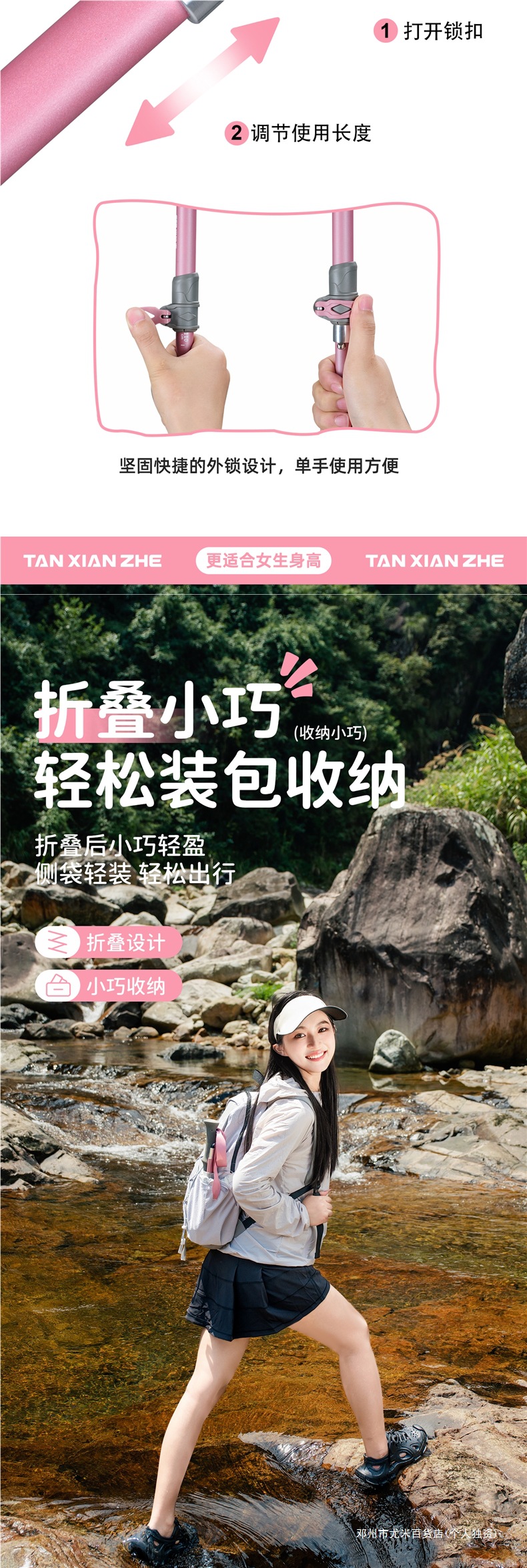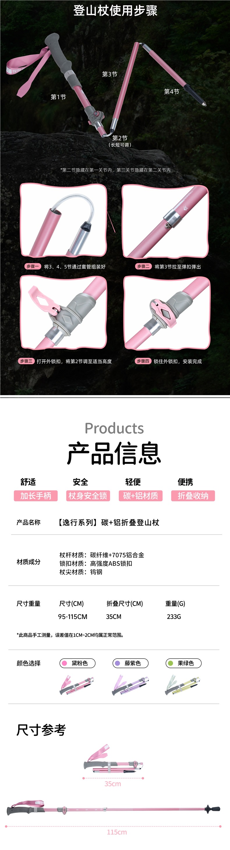 Yumi 탄소 섬유 접이식 하이킹 스틱 여성용 지팡이 전문 야외 하이킹 장비 핑크 어린이 지팡이스토어 가기