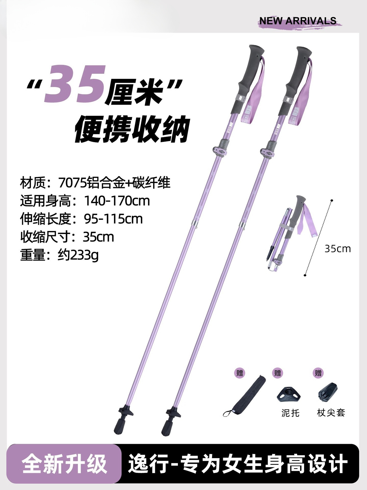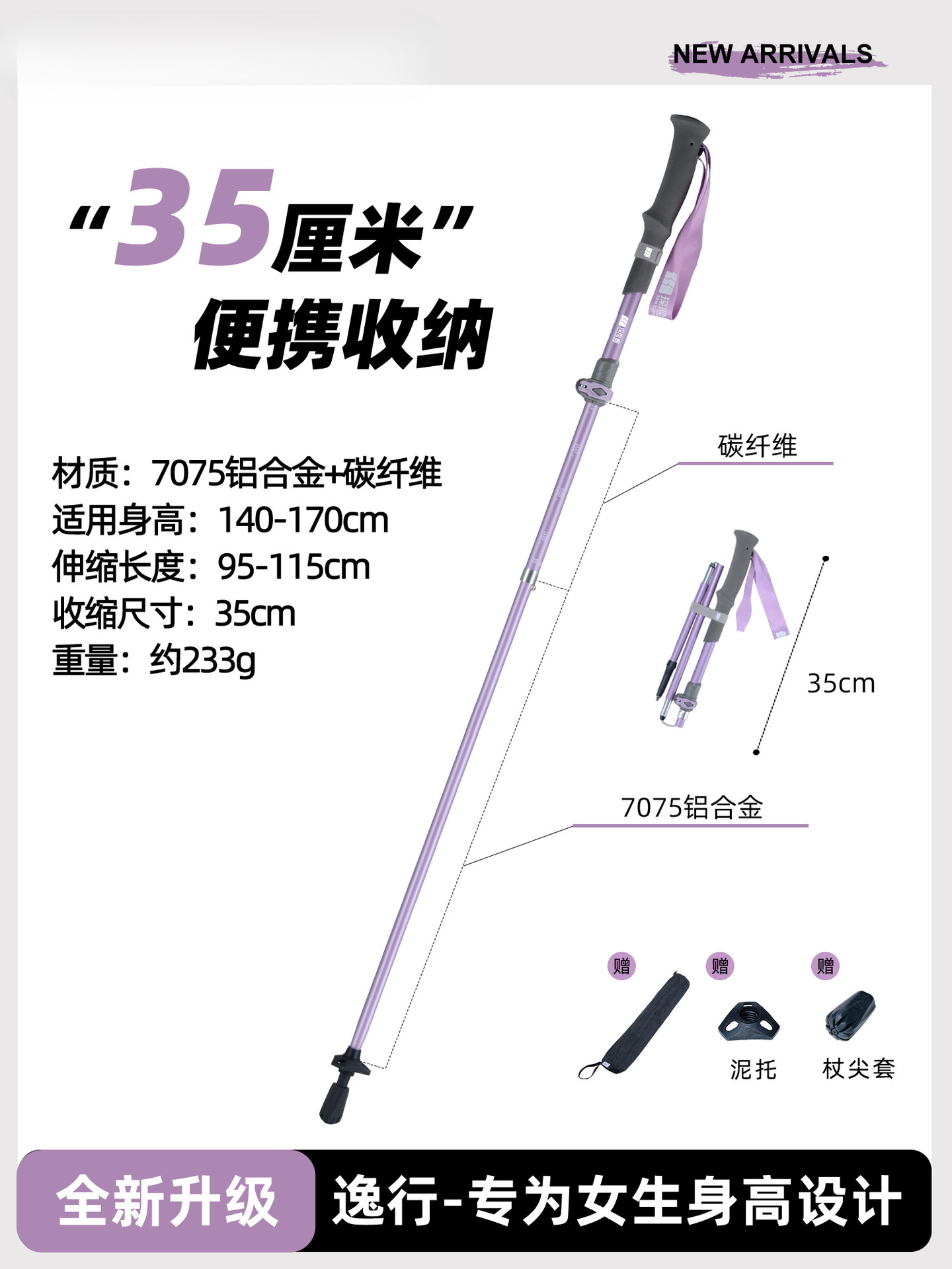 • [풀림방지 디자인-] 라탄 퍼플 [카본 플러스 알루미늄 접이식 모델] (신장 140cm-170cm용)