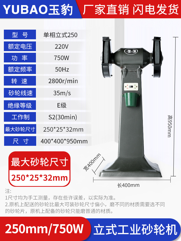 • 수직 250 그라인더 3상 750W 전문 칼날 연마/DIY 연삭 고품질 고마력