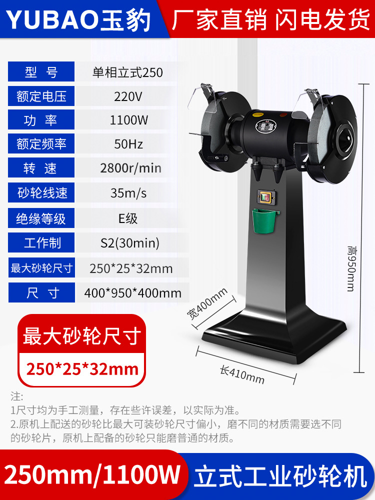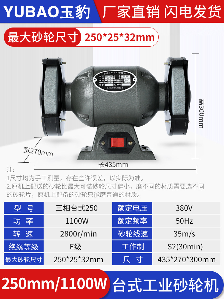 • 데스크탑 250 그라인더 단상 1100W 산업용 연삭 공구/공작물 고품질 고마력