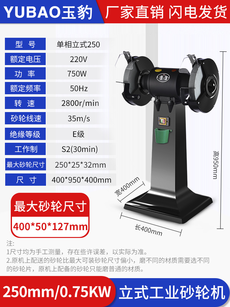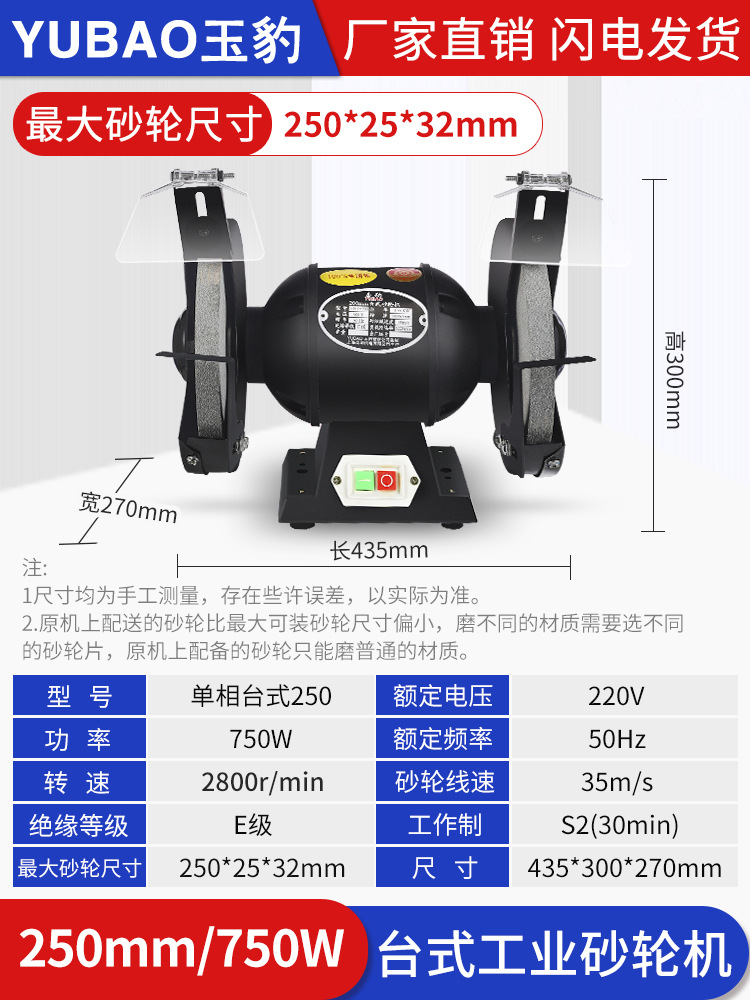 • 데스크탑 250 그라인더 단상 750W 산업용 연삭 도구/공작물 고품질 고마력