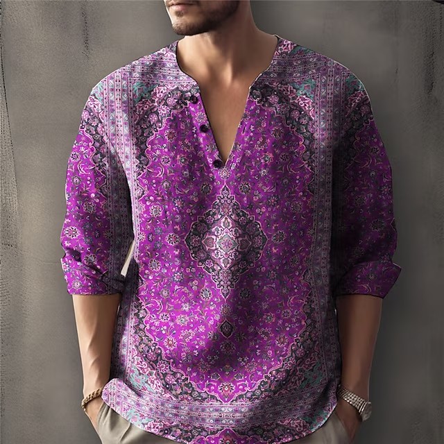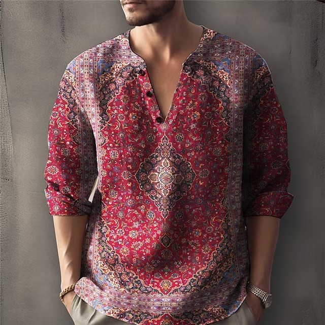 2023 크로스보더 신작 아마존 유럽과 미국 봄, 가을 심플 3D 프린트 스탠드 칼라 남성 캐주얼 셔츠 주문 기타스토어 가기