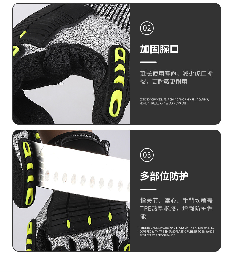 5단계 내진 및 충돌 방지 노동 보호 장갑, 두꺼운 내마모성 석탄 채굴 충격 방지 및 충격 방지 장갑