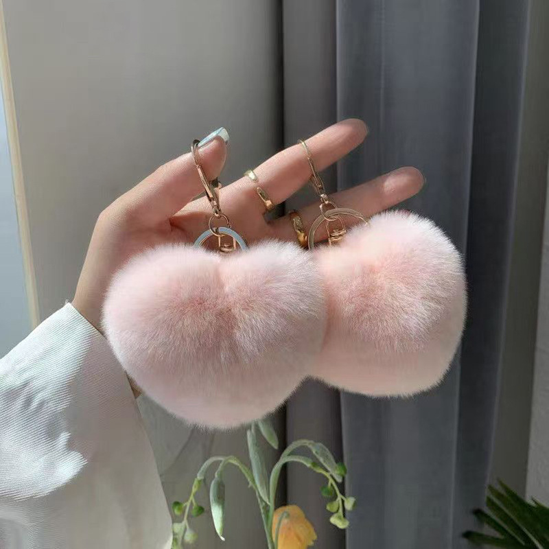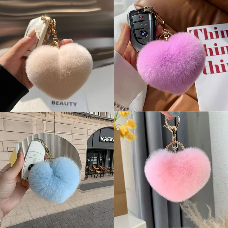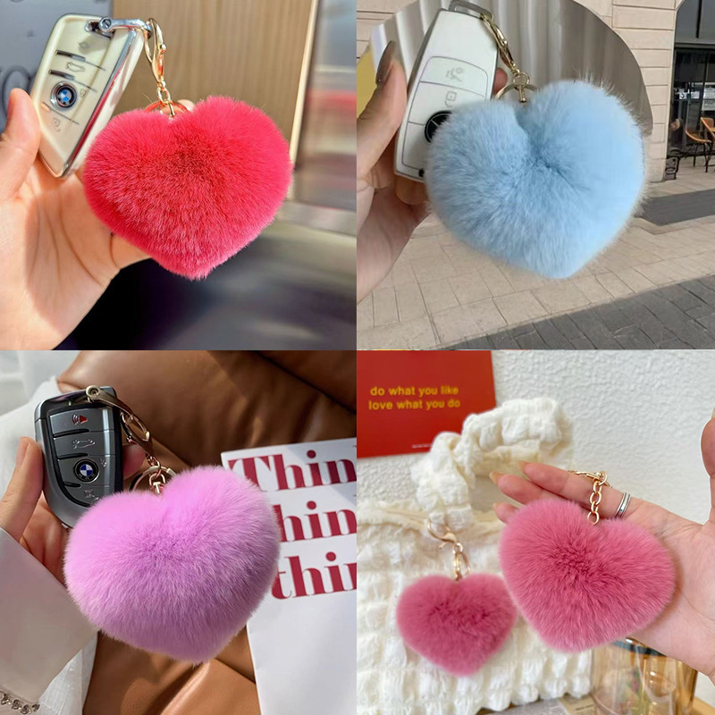 새해 하트 모양의 귀여운 작은 사랑 머리 공 펜던트 자동차 키 체인 펜던트 봉지 펜던트 가방 여성용 장식품스토어 가기