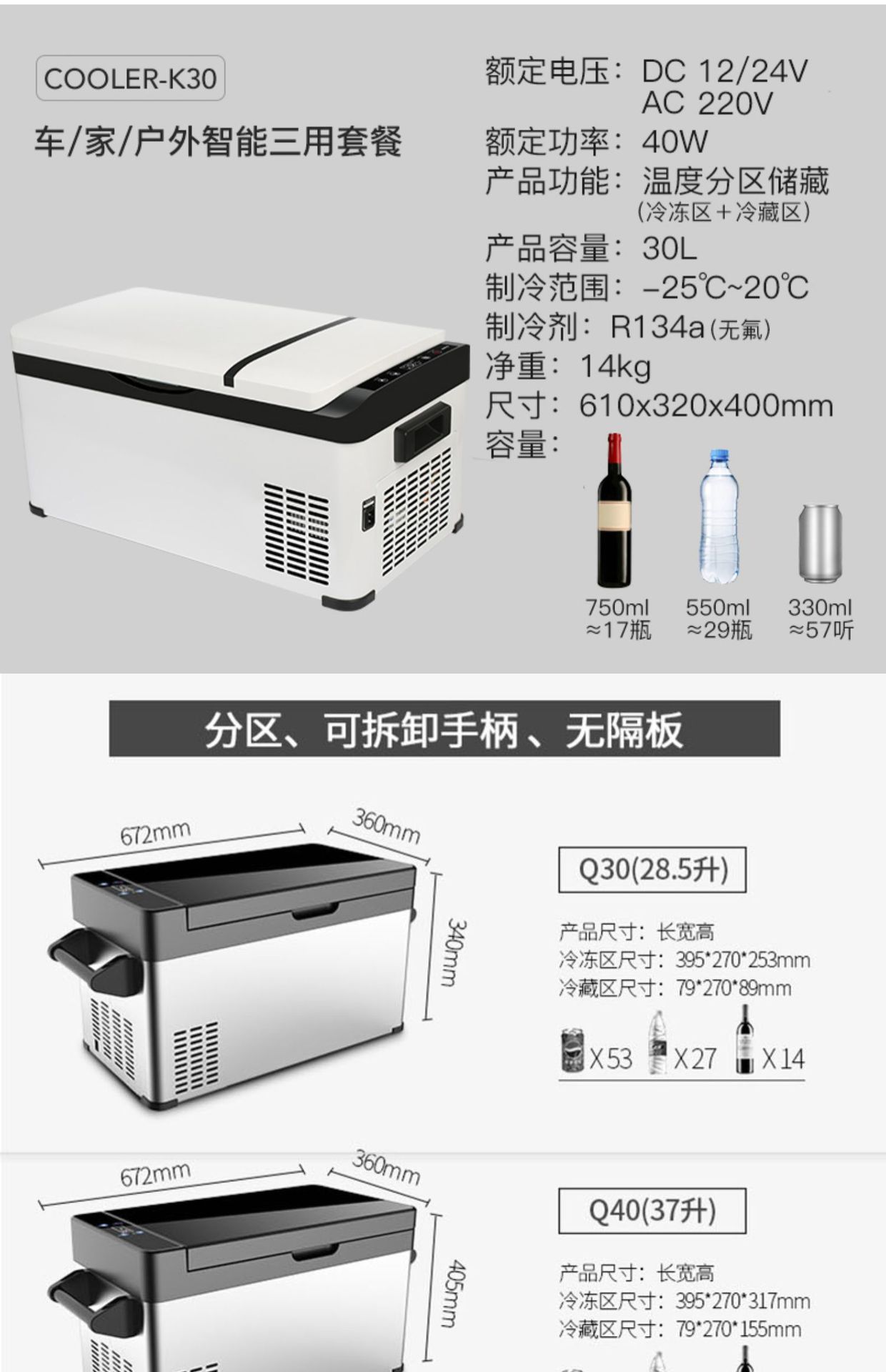 • 30리터 그레이 냉동 및 냉장 이중 구역 [K30 차량용 및 가정용 겸용 디지털 터치]