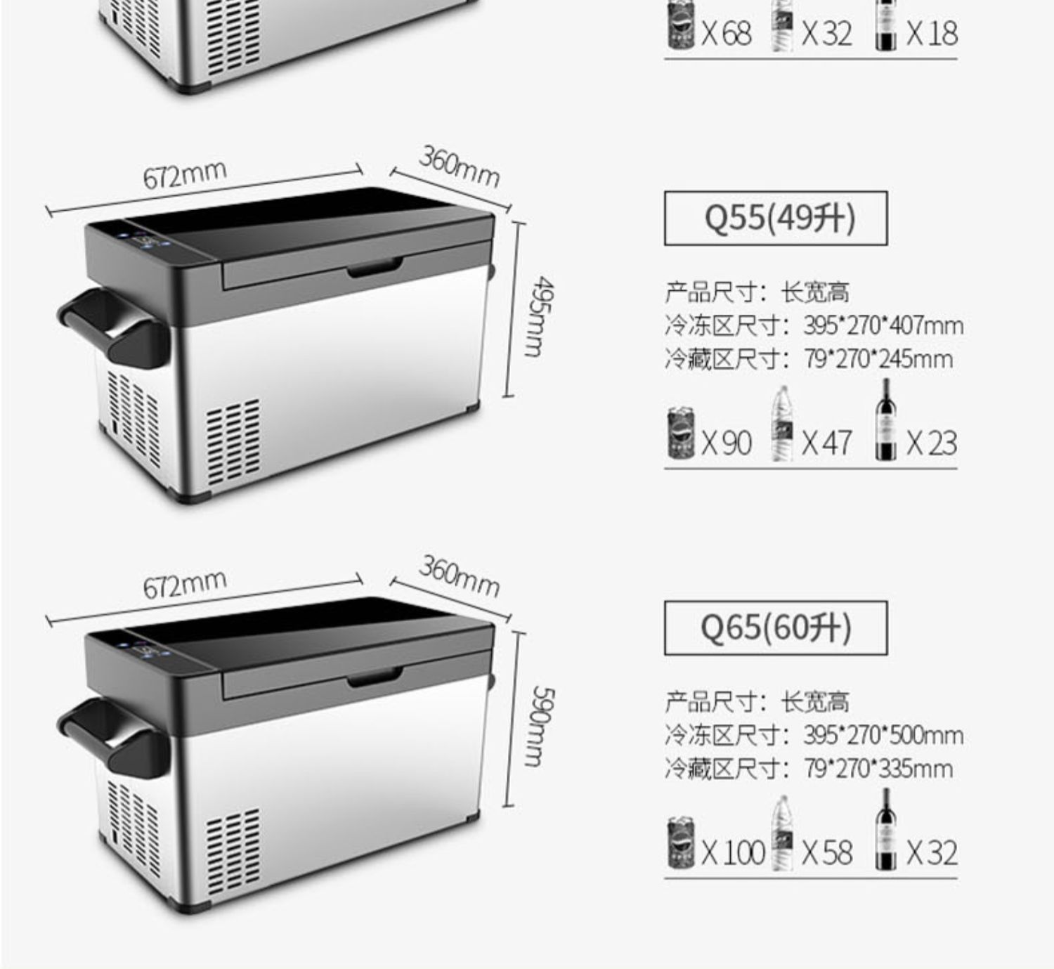 • 60L-Q65 냉동 및 냉장 듀얼존 [자동차와 가정 겸용 - 터치컨트롤] 대용량