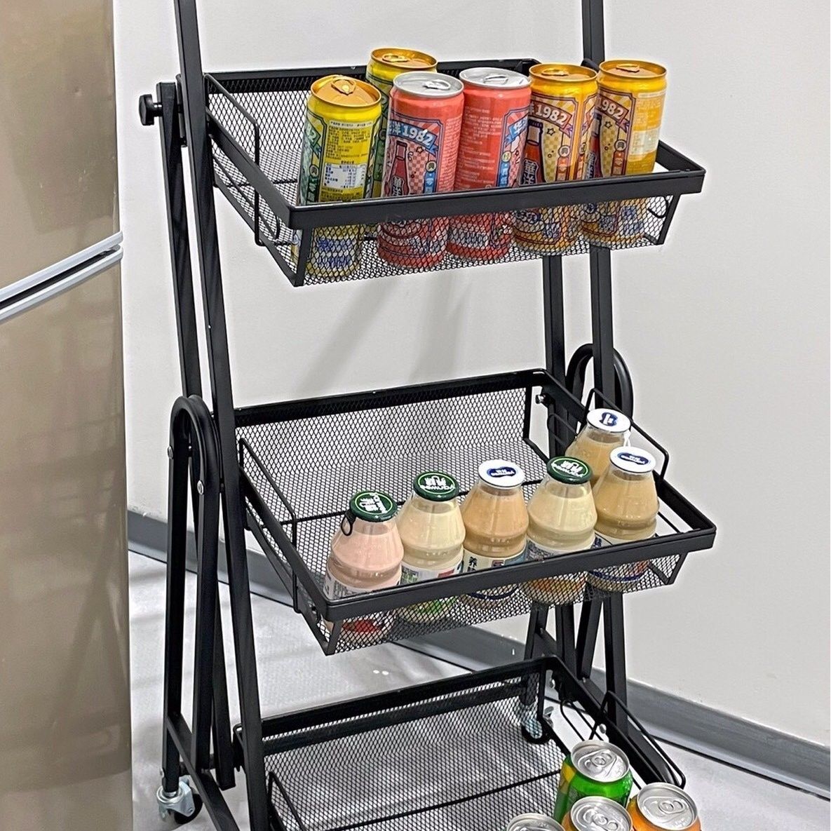 다기능 식료품 랙 디스플레이 랙 꽃 랙 책장 스낵 랙 주방 보관 랙 스트레치 바닥 트롤리스토어 가기