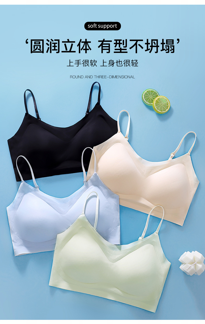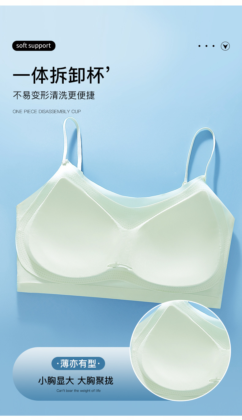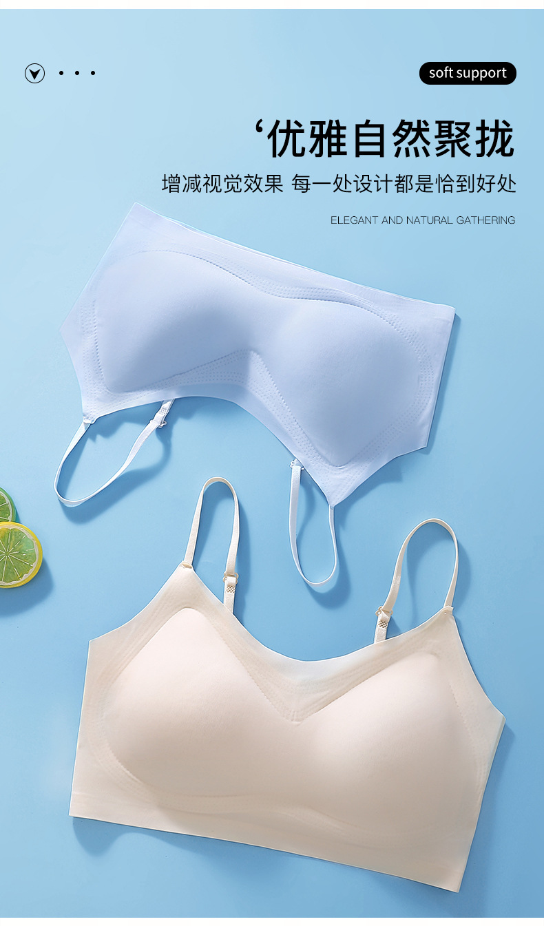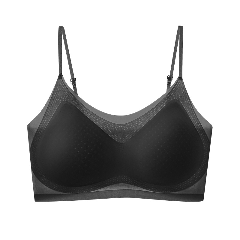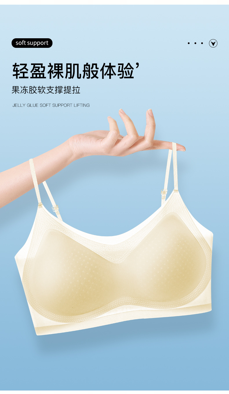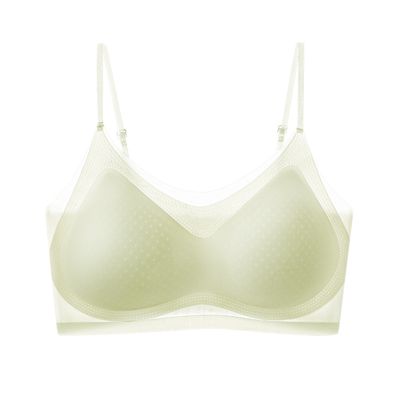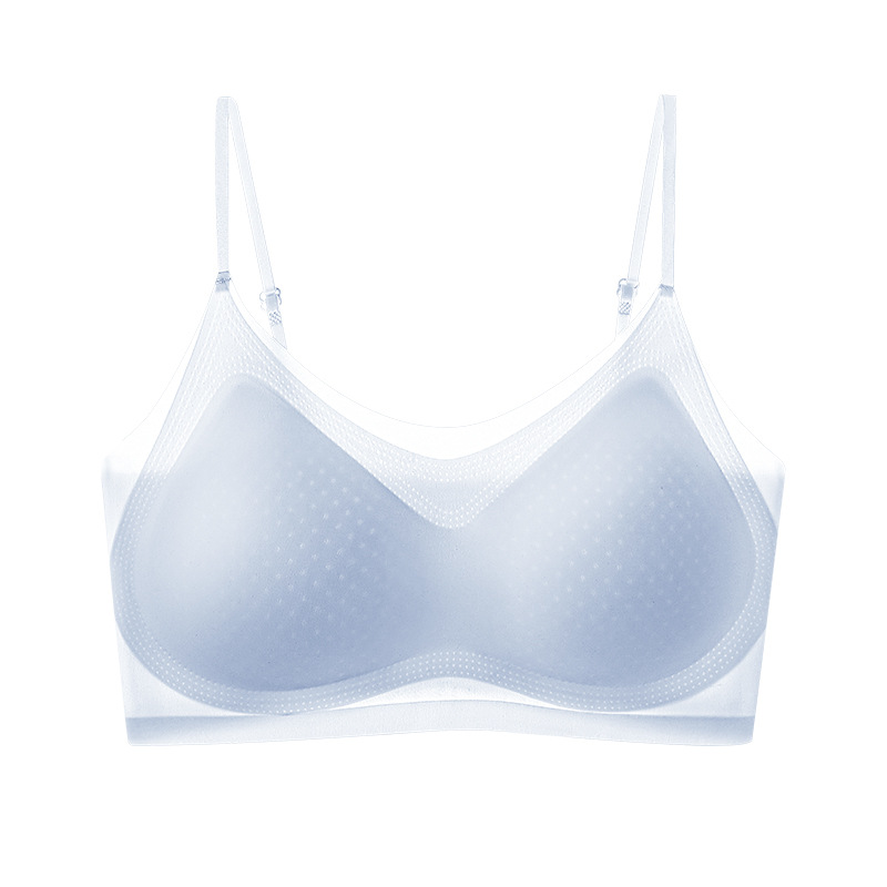 추적없는 젤리 속옷 얇은 작은 가슴 푸시 업 브라 라텍스 통합 조끼 아이스 실크 통기성 경량 여성