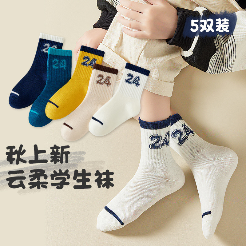• 24호 학생 스포츠 양말 [봄, 가을 5켤레]