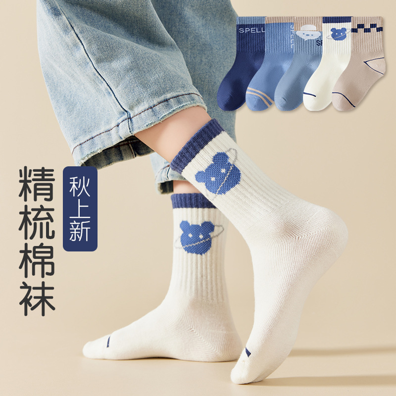 어린이 양말, 소년 봄, 가을 새로운 면 양말, 중간 길이 스포츠 면 양말, 소녀 가을 어린이 양말, 중대형 어린이 양말 도매스토어 가기