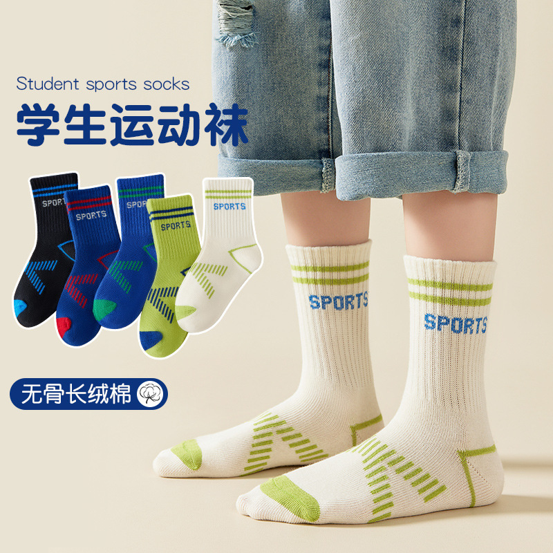 어린이 양말, 소년 봄, 가을 새로운 면 양말, 중간 길이 스포츠 면 양말, 소녀 가을 어린이 양말, 중대형 어린이 양말 도매