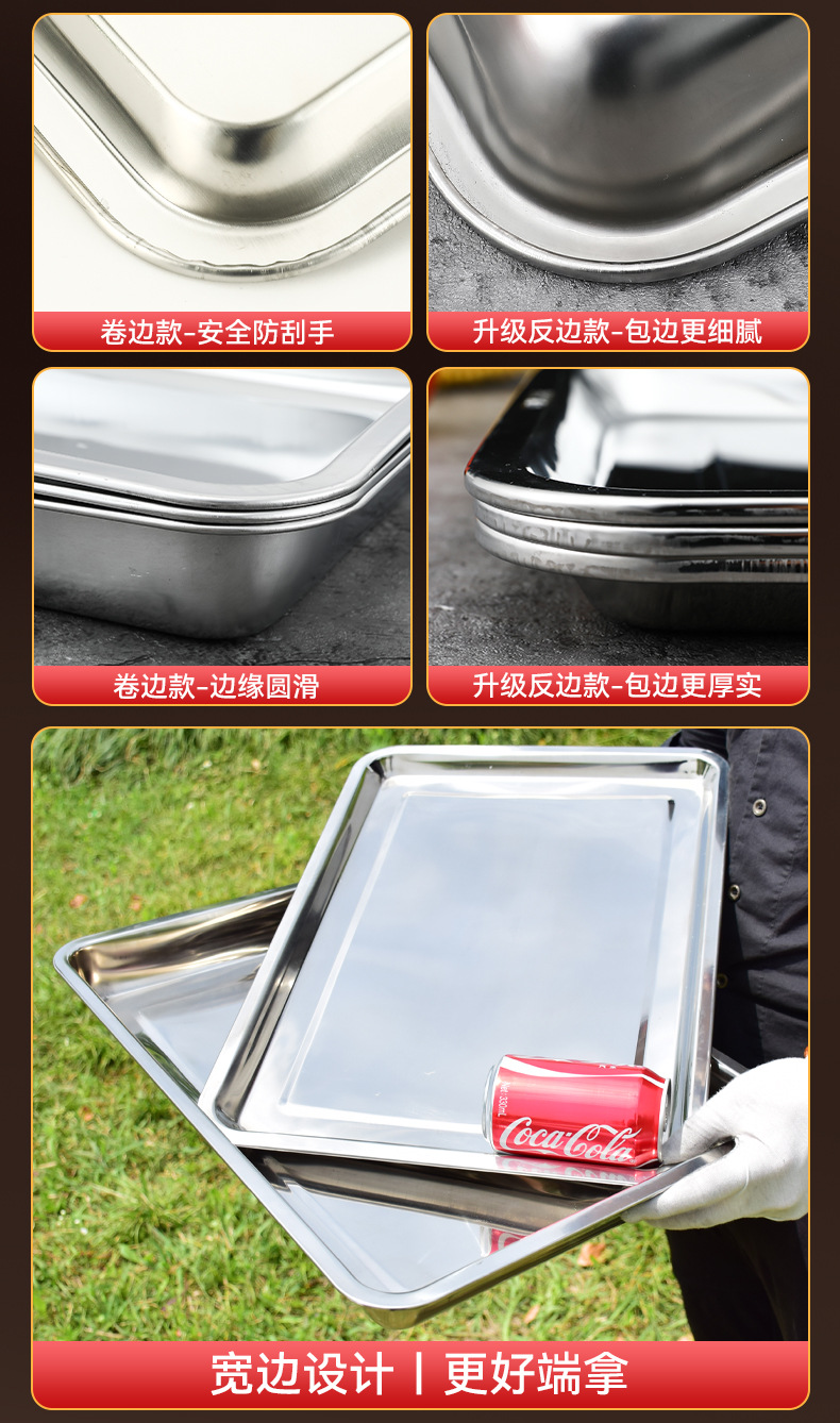 스퀘어 플레이트 스테인레스 스틸 플레이트 직사각형 찐 쌀 플레이트 바베큐 플레이트 상업용 가정용 철판 디너 플레이트 도매