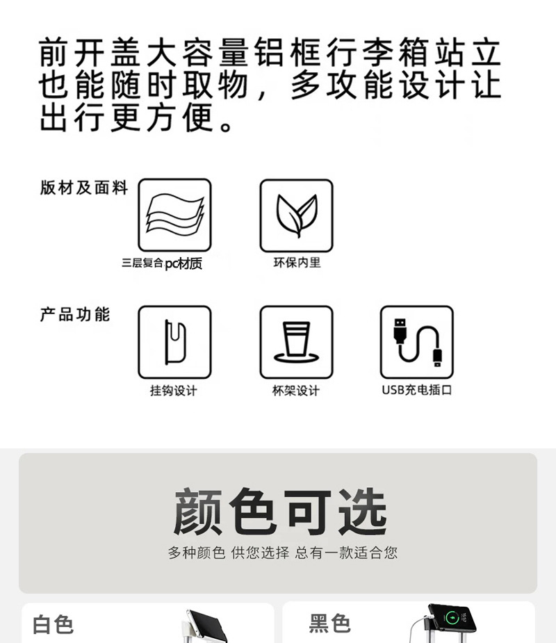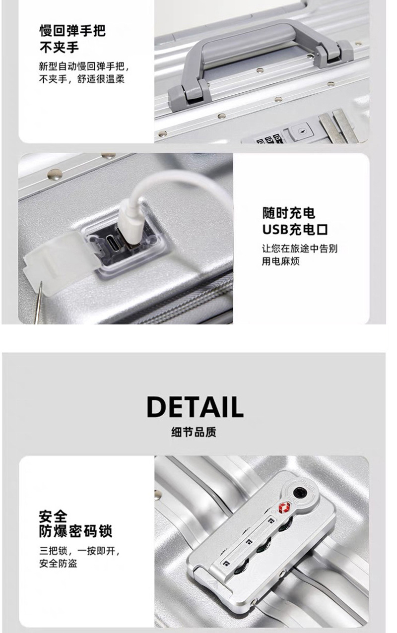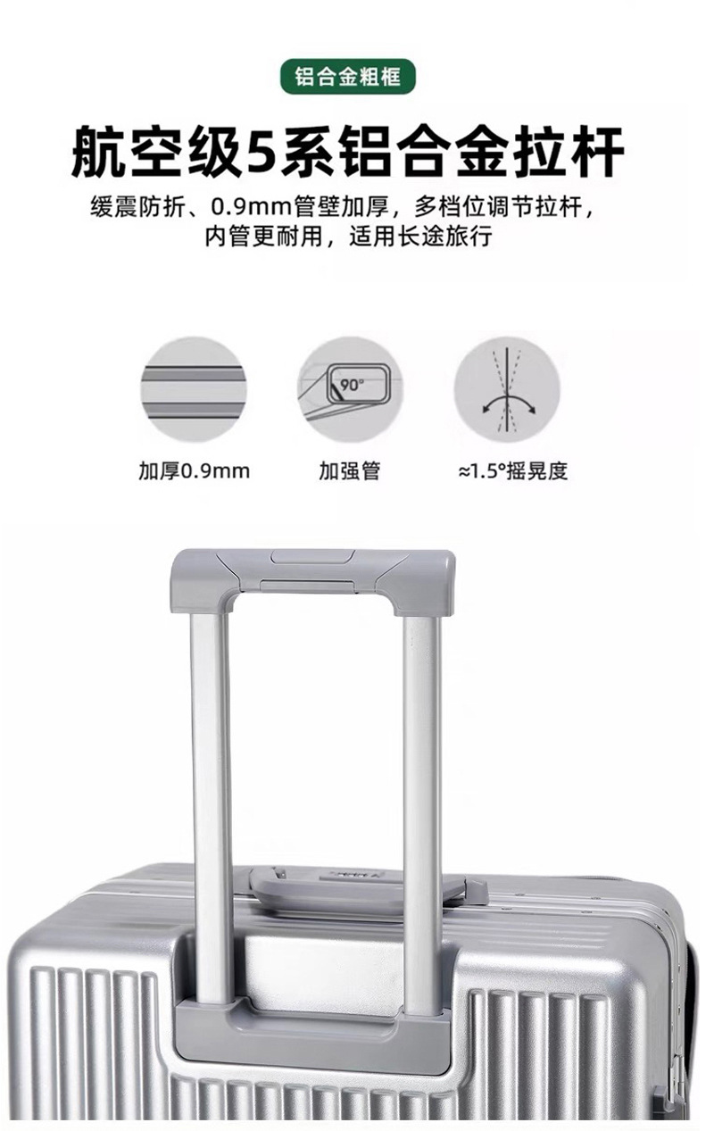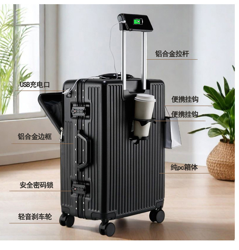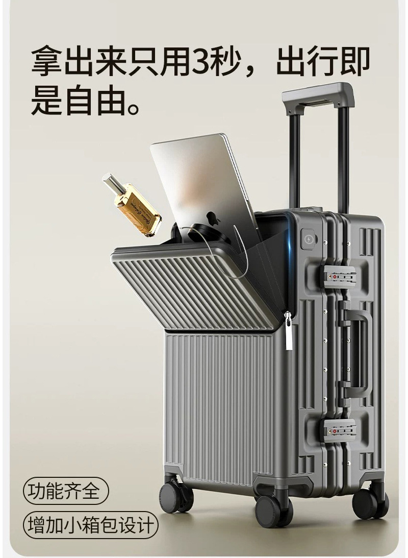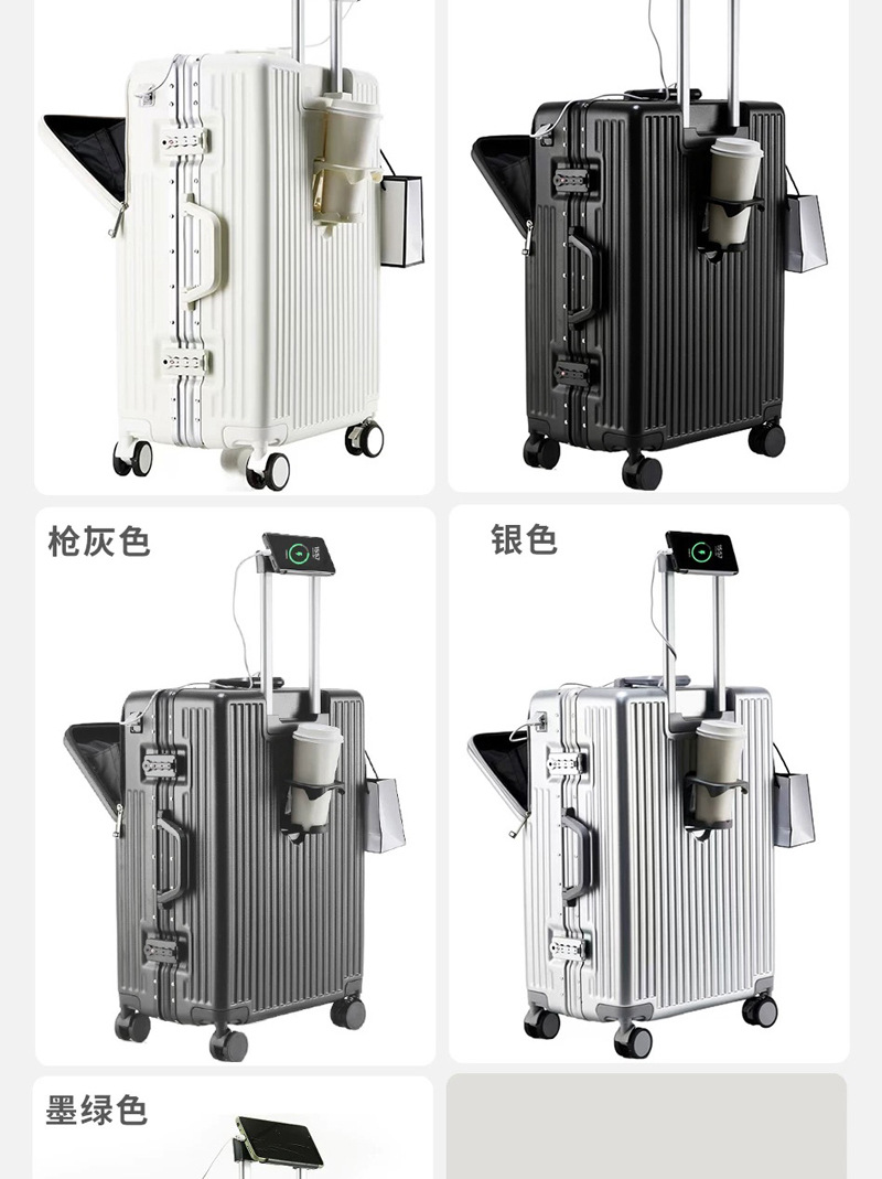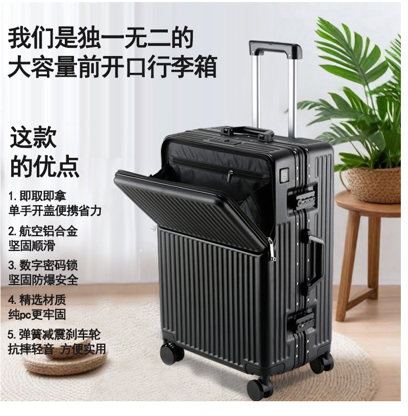 전면 개방 알루미늄 프레임 비즈니스 수하물 남자의 조용한 유니버설 휠 가방 여성 다기능 암호 상자스토어 가기