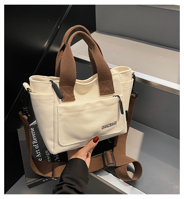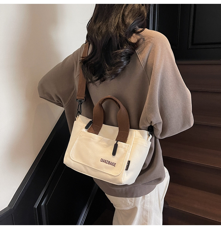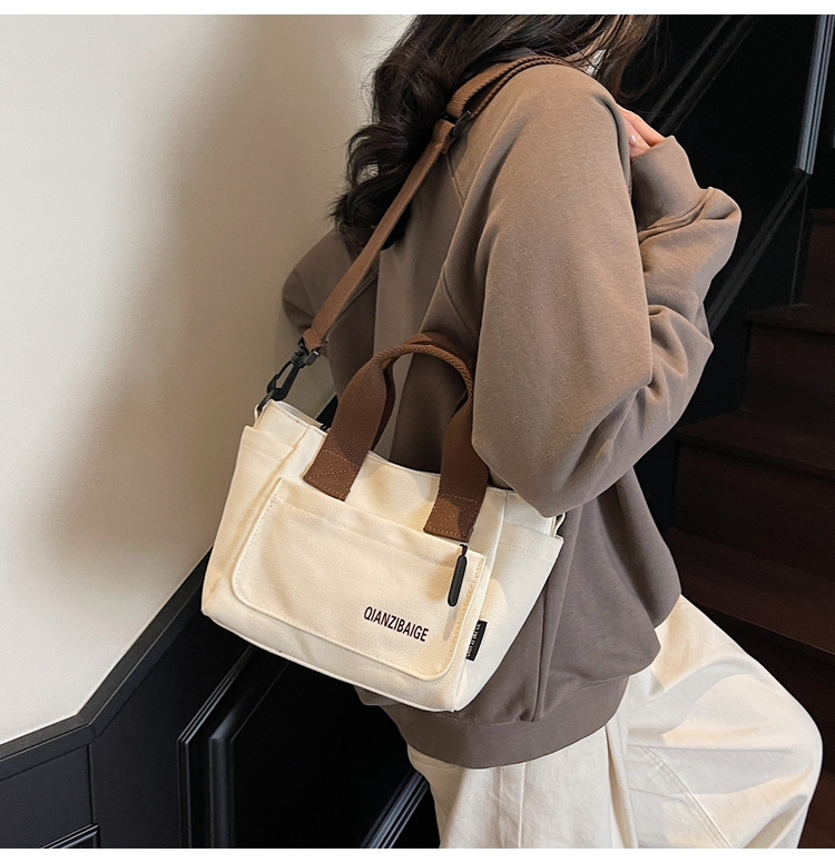 한국식 심플 숄더백 핸드백 2025 신작 프린트 레터 와이드 숄더 스트랩 캔버스 백 다용도 숄더백스토어 가기