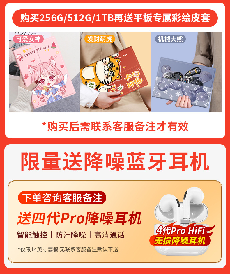 • 1TB 베스트셀러 모델 - 공식 표준 구성 - [ 14inch 소프트 라이트 눈 보호] 4/5G WIFI 플러그인 카드 플래그십 머신에 연결 가능