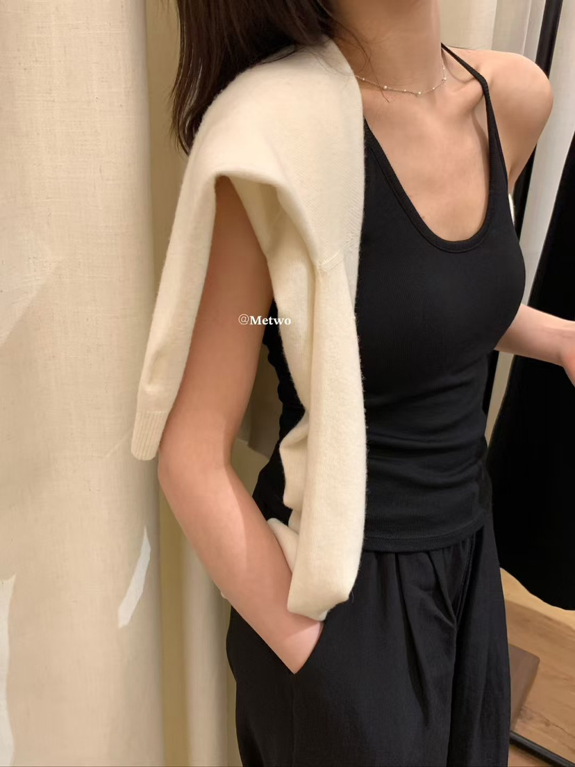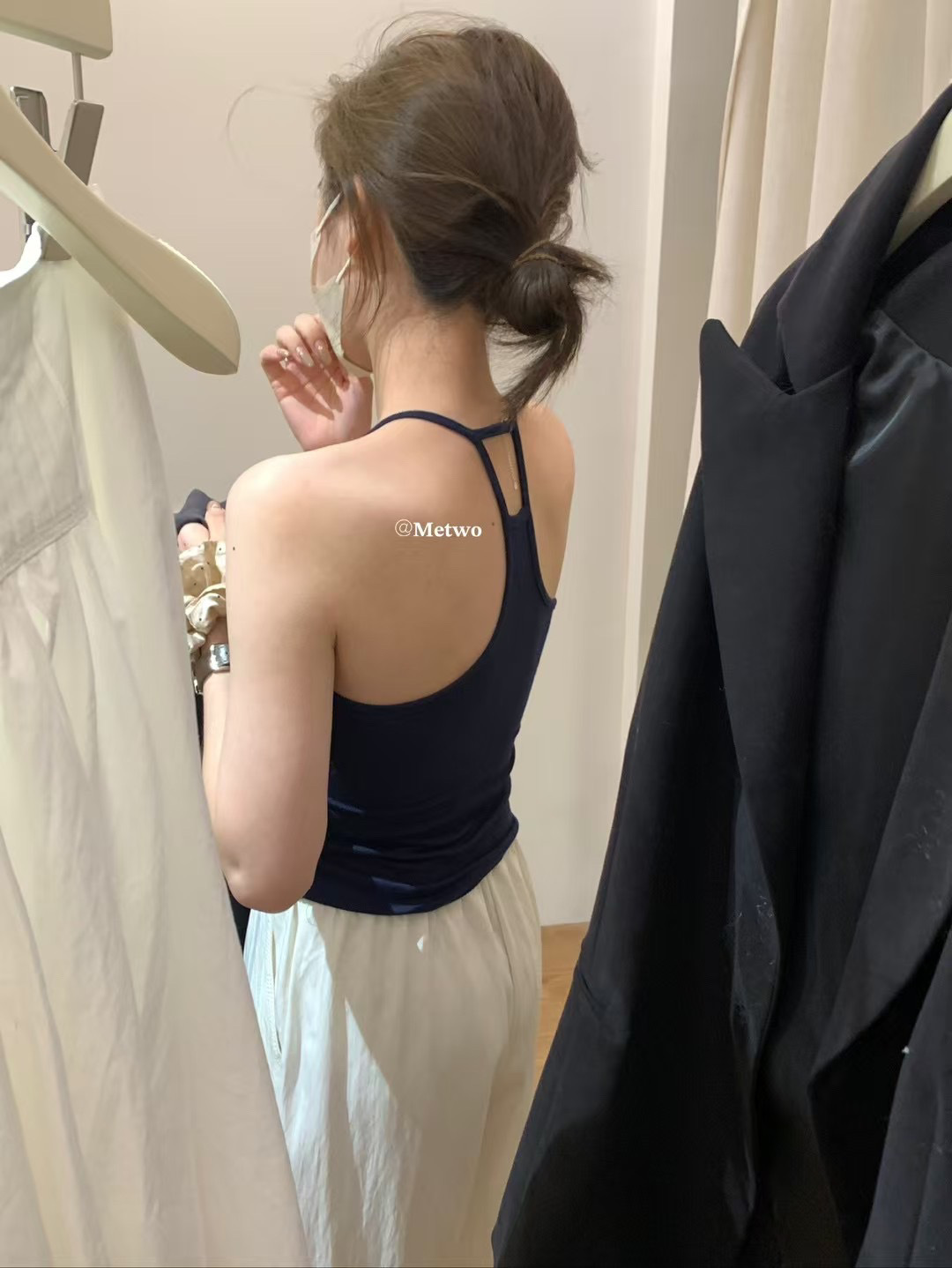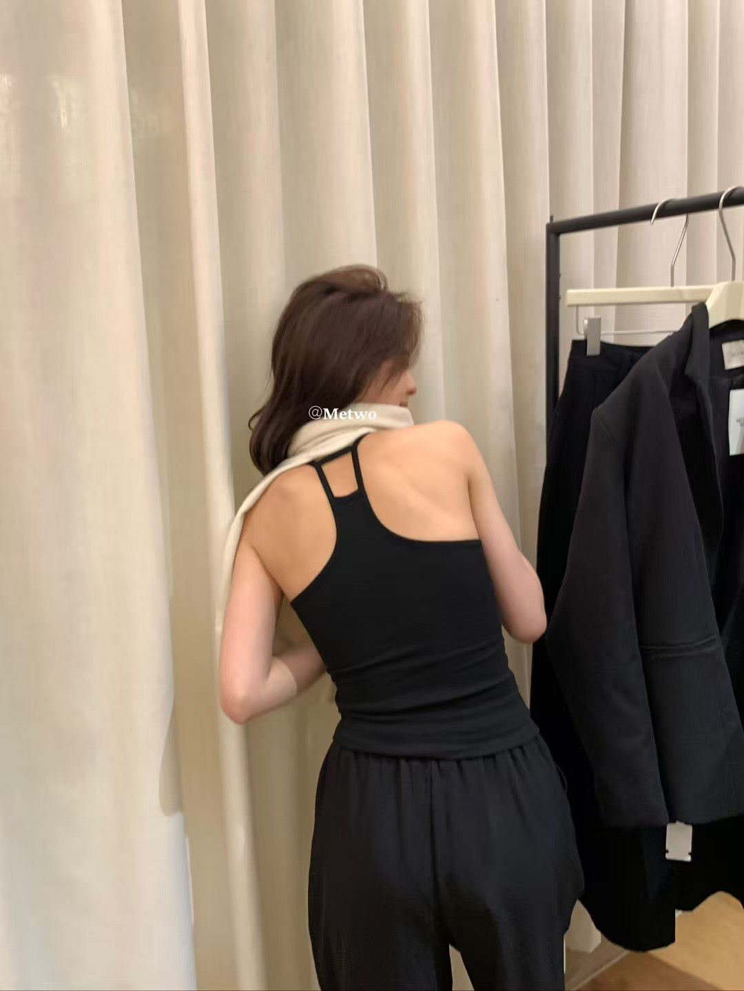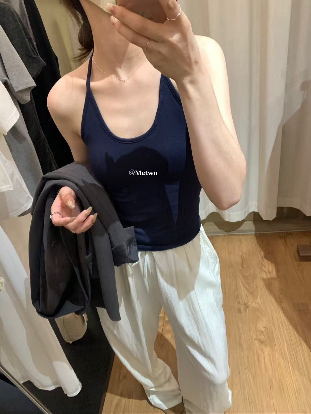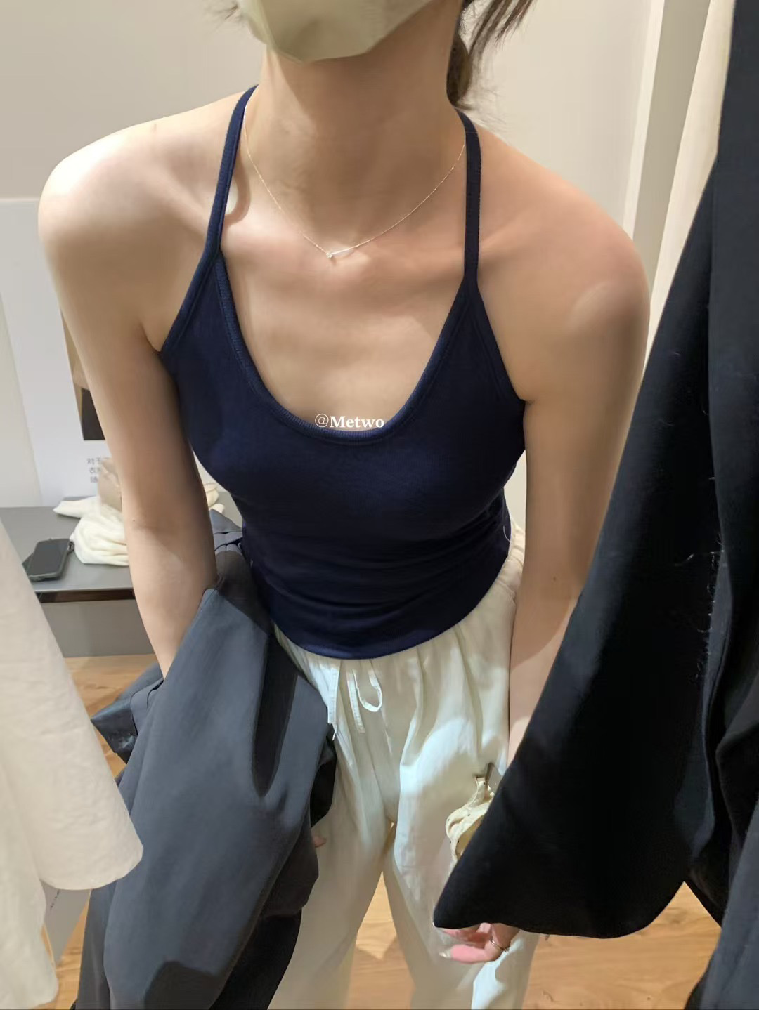METWO 다재다능한 캐주얼 부드럽고 피부 친화적인 숄더 U넥 서스펜더 컵받침 포함 슬림하고 편안한 여성용 I자형 조끼스토어 가기