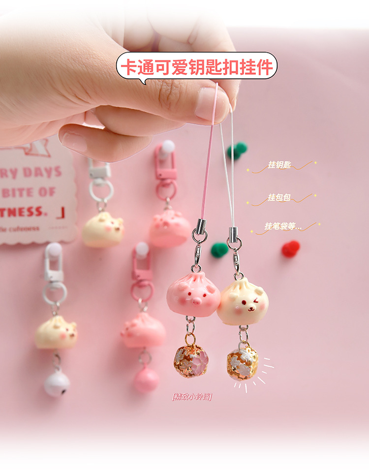 귀여운 시뮬레이션 작은 케이지 가방 키 체인 돼지 롤빵 펜던트 만화 재미있는 학교 가방 펜던트 커플 여자 친구 선물스토어 가기