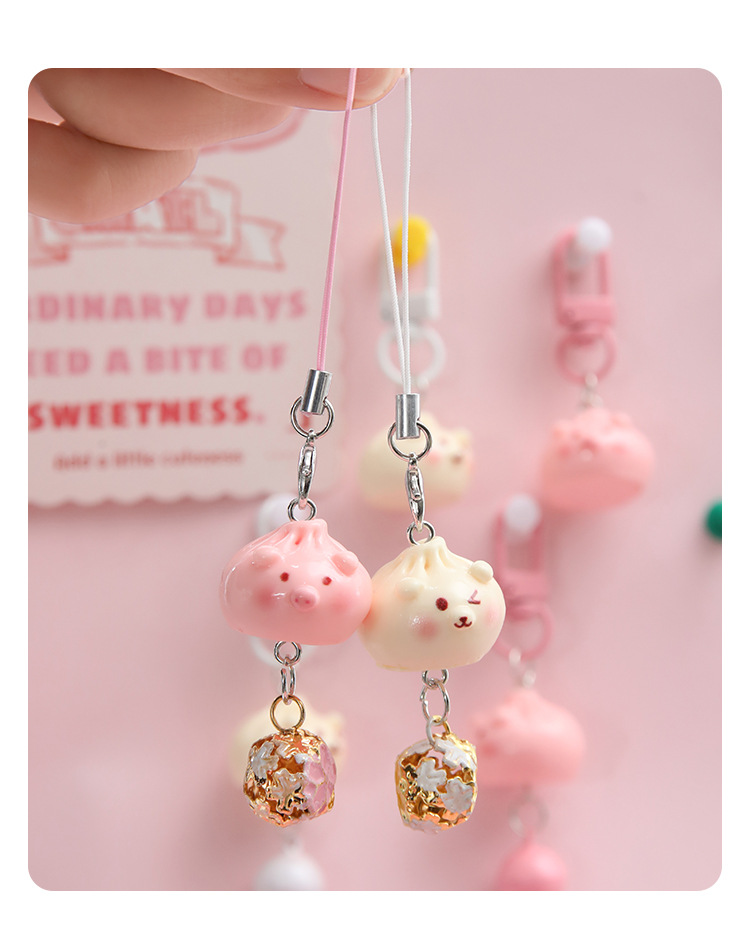 귀여운 시뮬레이션 작은 케이지 가방 키 체인 돼지 롤빵 펜던트 만화 재미있는 학교 가방 펜던트 커플 여자 친구 선물