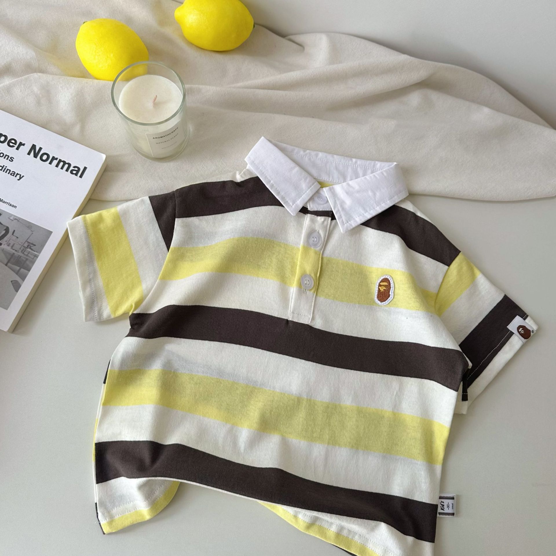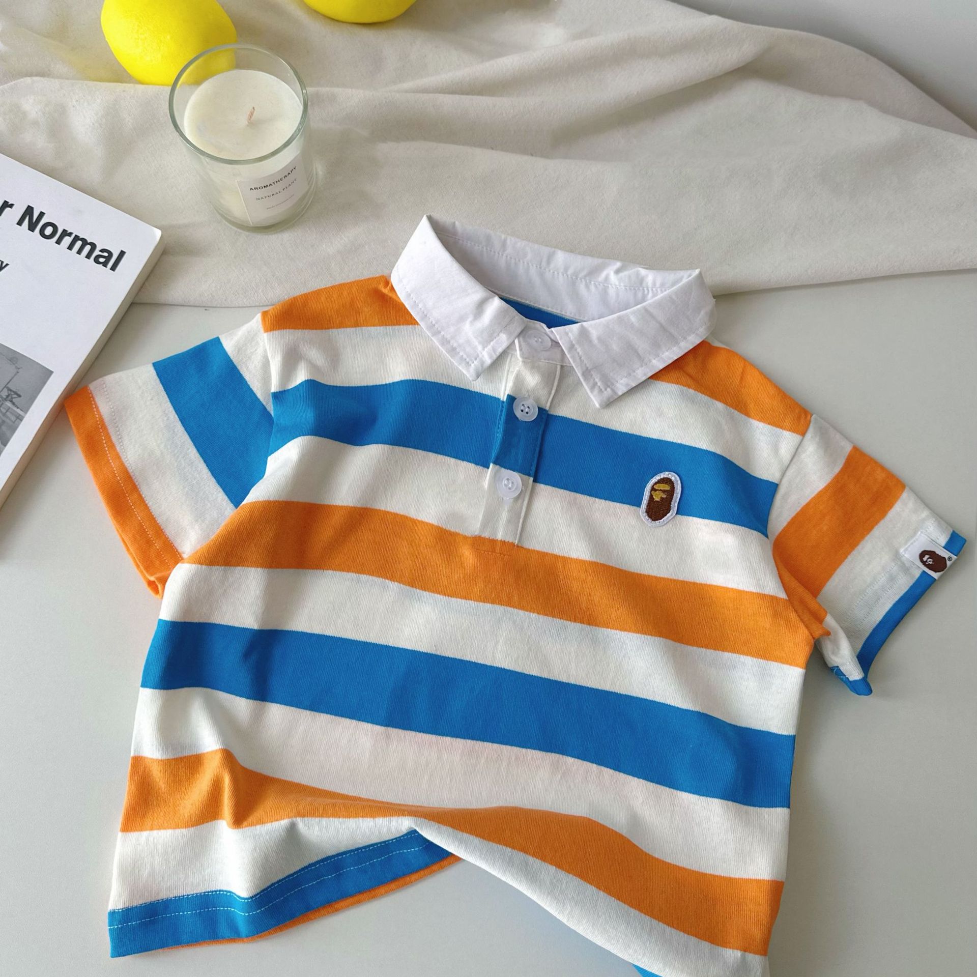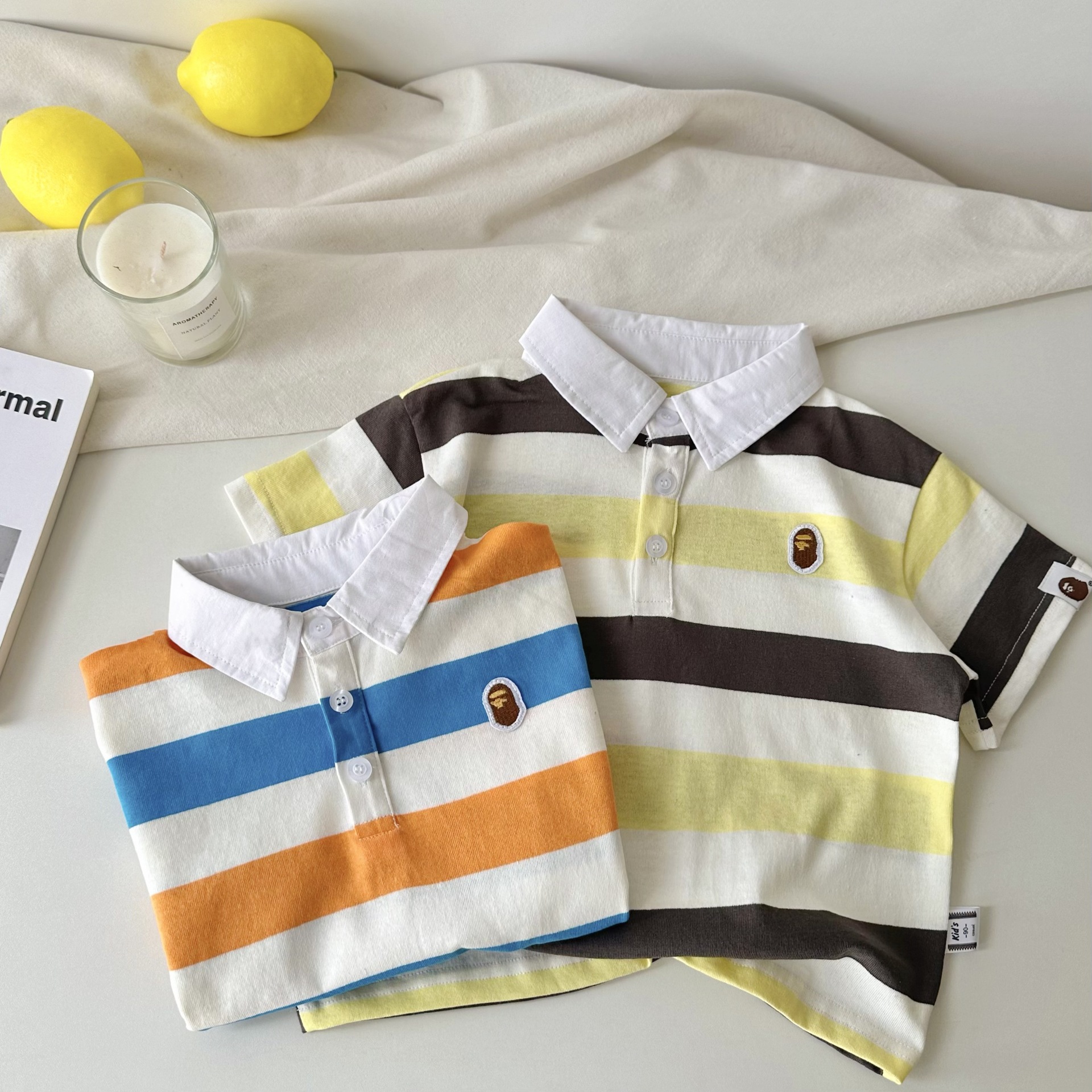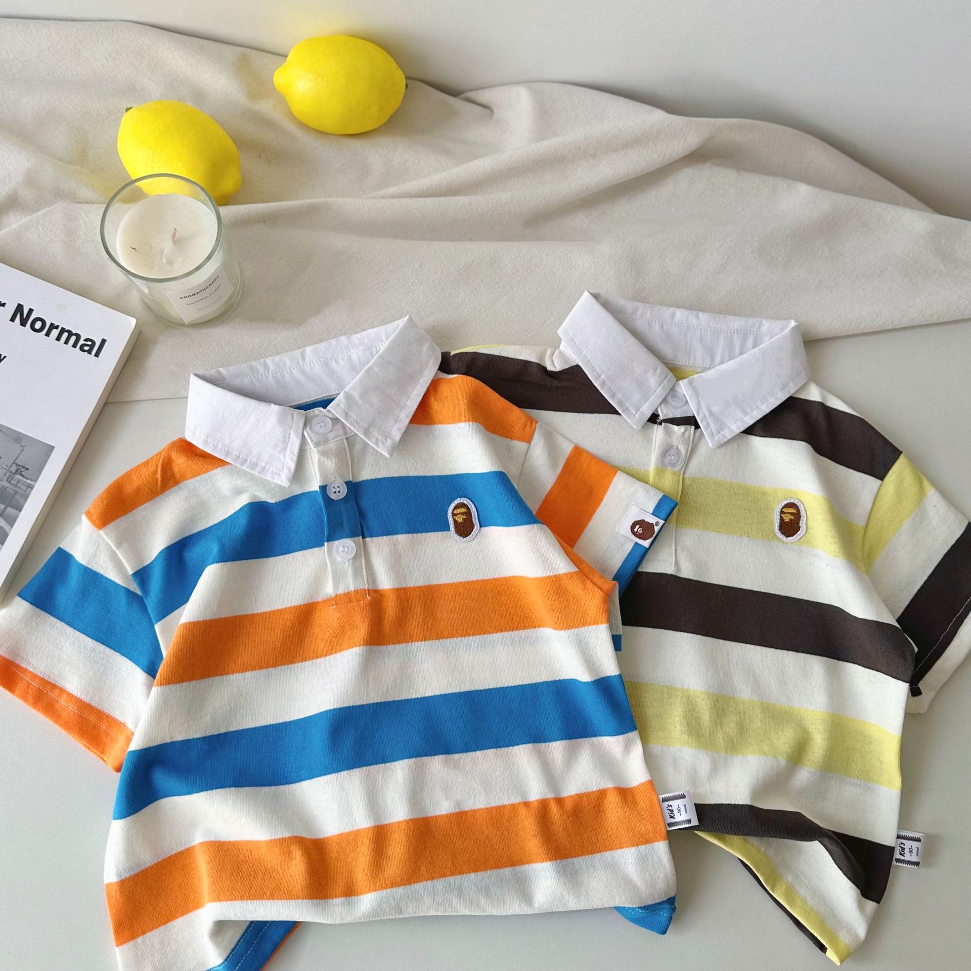 어린이 반팔 티셔츠 25 여름 새 소년 일본 유행 반팔 줄무늬 티셔츠 여름 아기 반팔스토어 가기