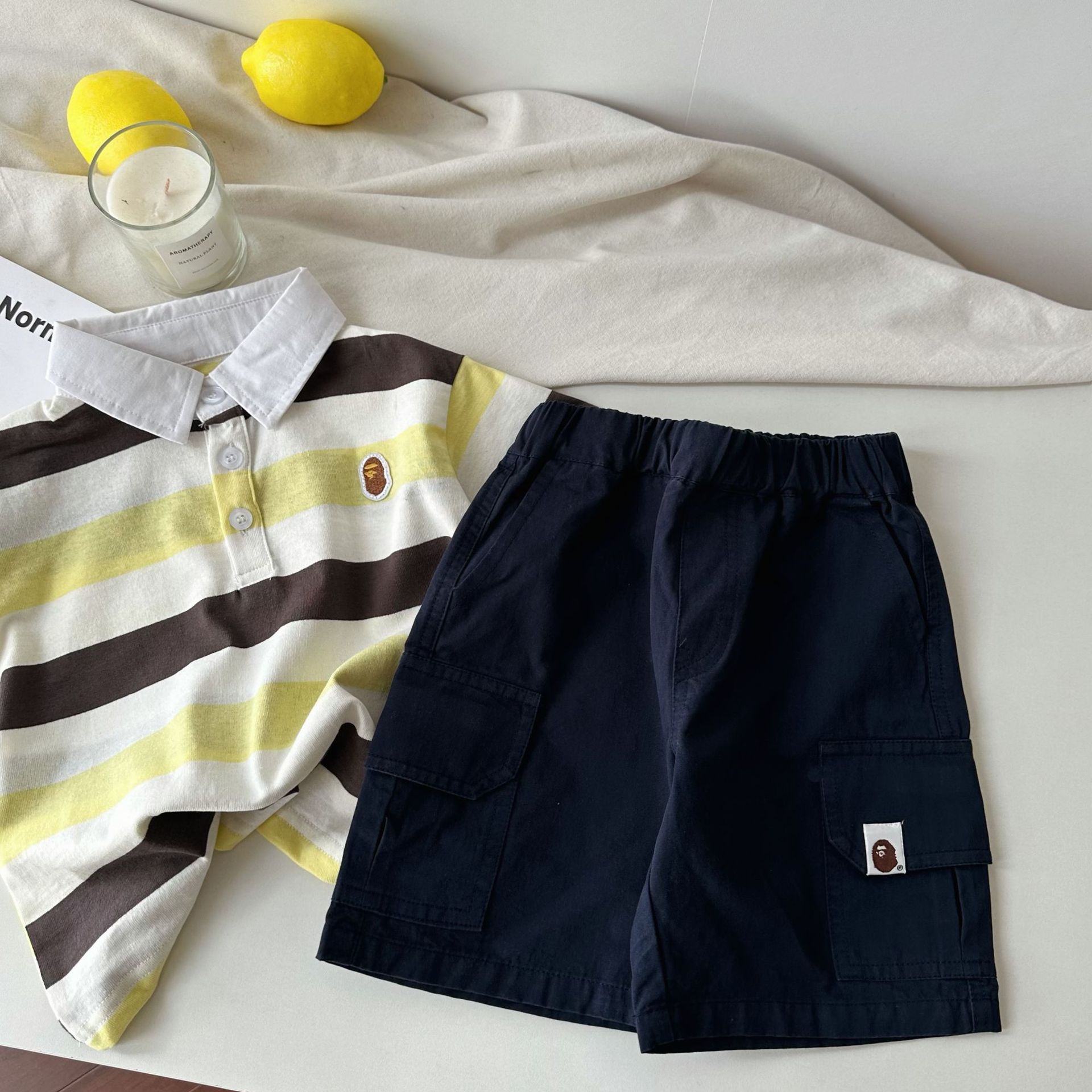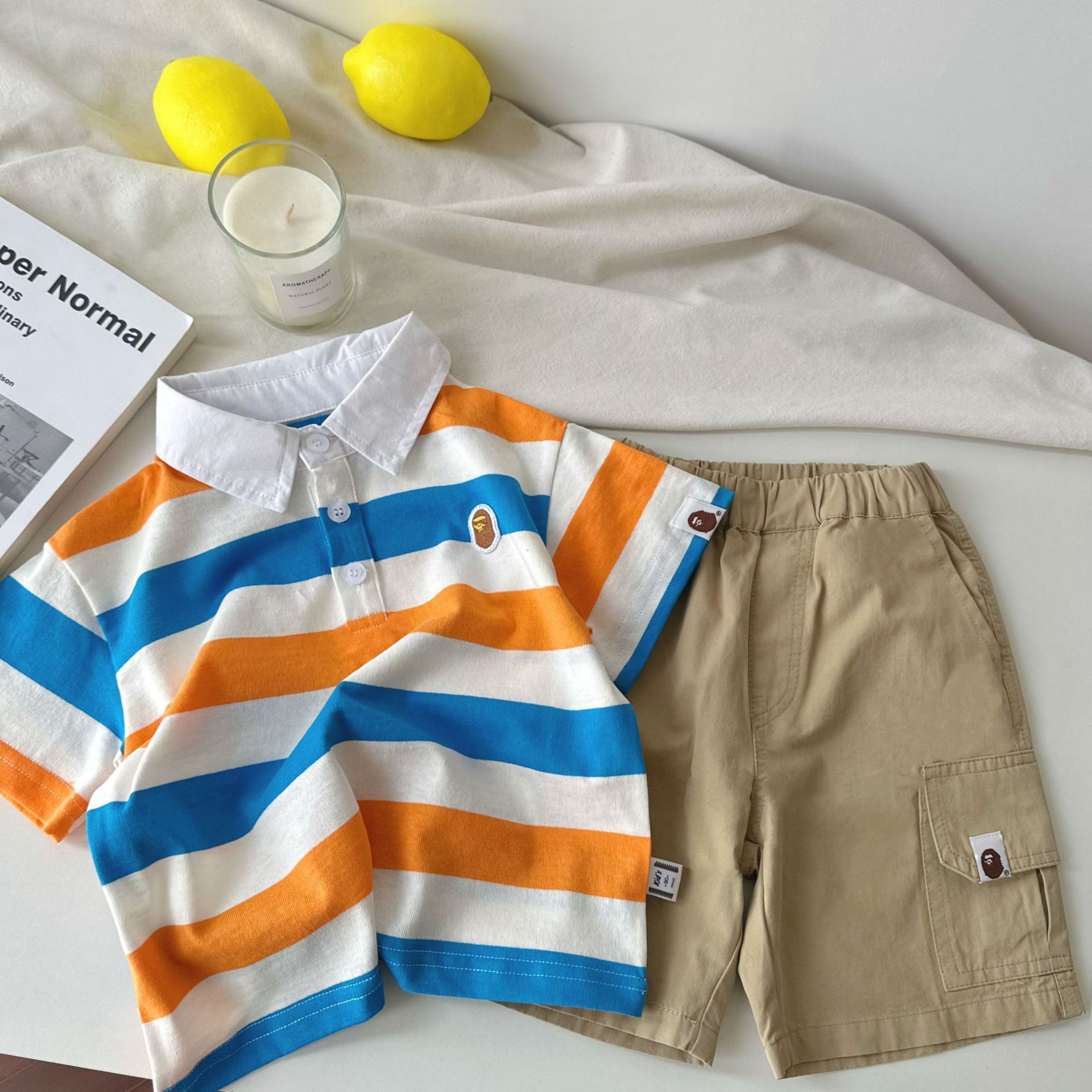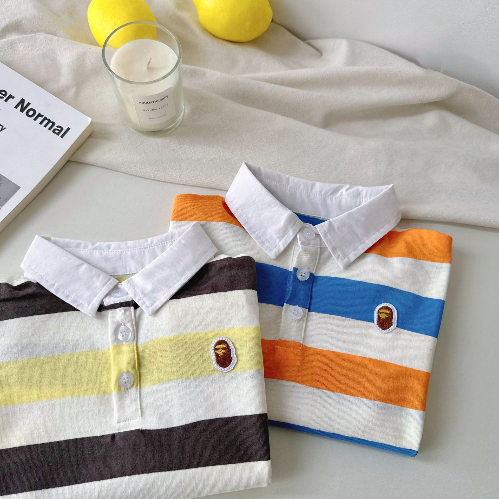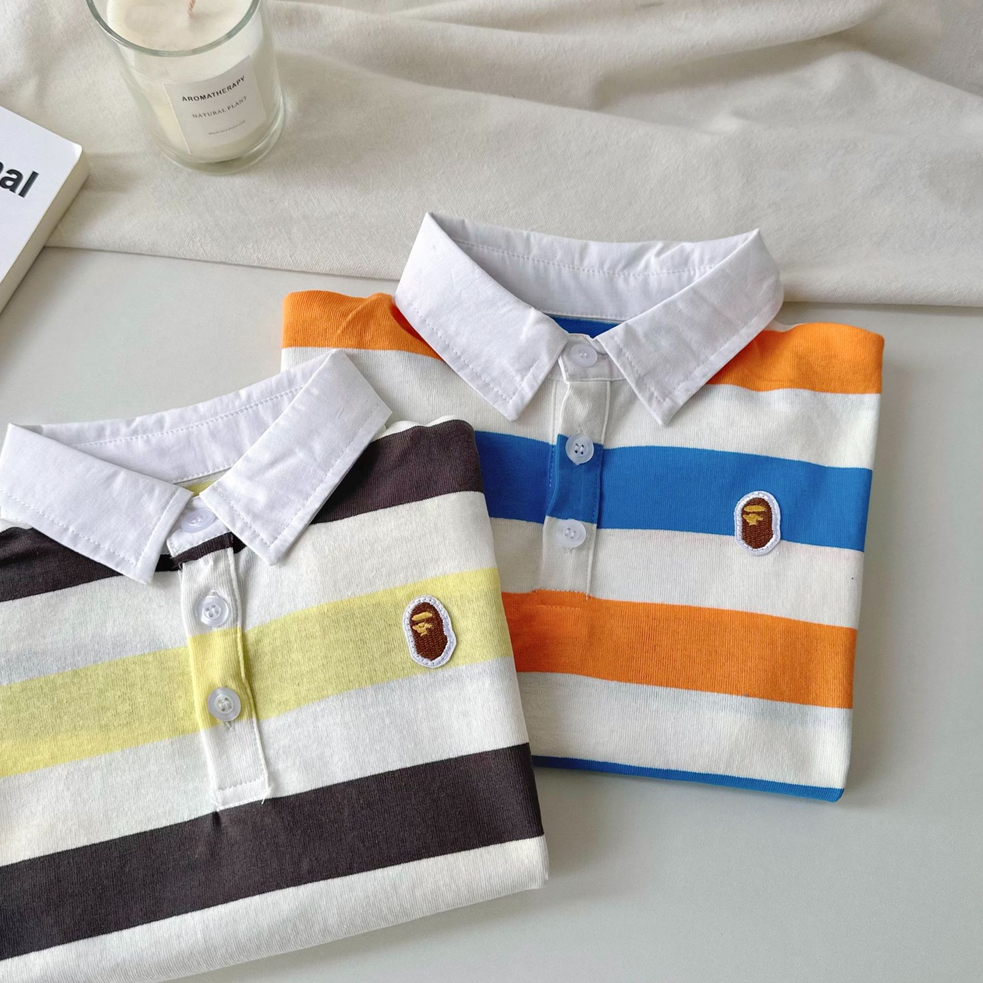 어린이 반팔 티셔츠 25 여름 새 소년 일본 유행 반팔 줄무늬 티셔츠 여름 아기 반팔스토어 가기