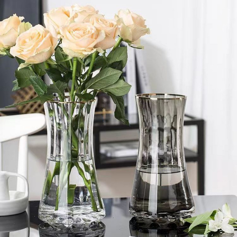 고급 단순하고 가벼운 럭셔리 두꺼운 스타일의 투명 유리 꽃병 물에 키운 부자 대나무 꽃꽂이 거실 장식품스토어 가기
