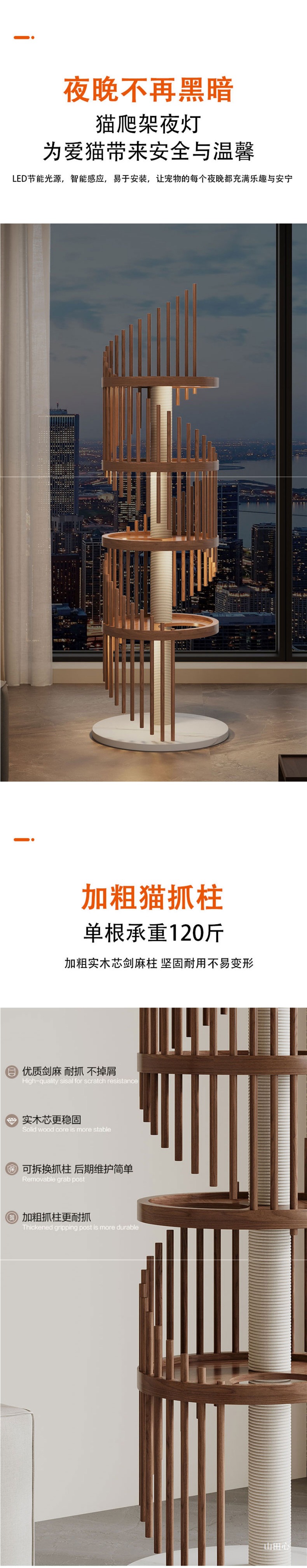 • [5겹] 원목 고양이 등반 프레임 + 스포트라이트 4개