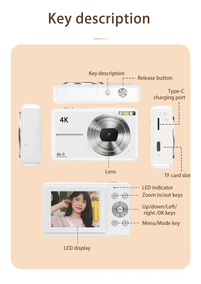 국경 학생 디지털 카메라 복고풍 CCD 캠퍼스 HD 휴대용 작은 vlog 카메라 입력 카드 카메라스토어 가기