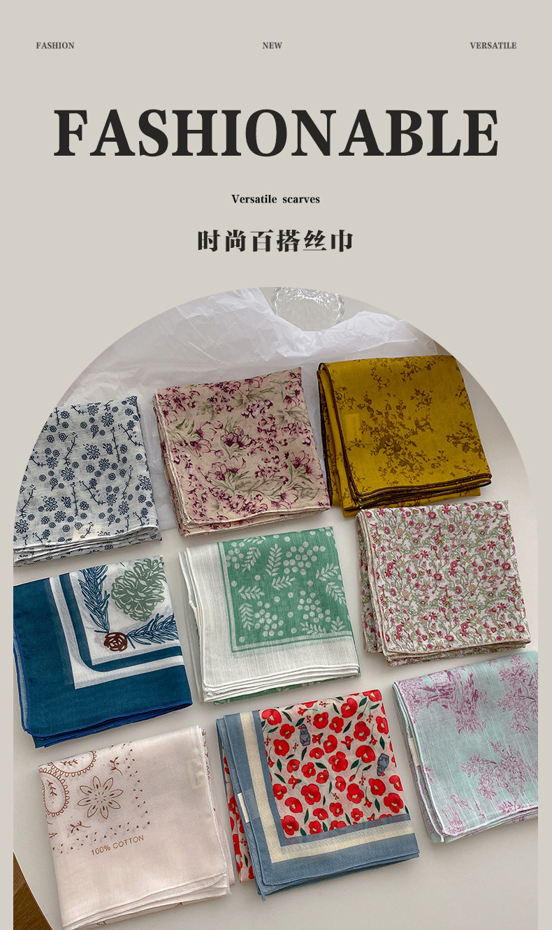 새로운 스타일 올 매치 스퀘어 스카프 패션 선스크린 스퀘어 웨스턴 스타일 라이트 럭셔리 하이 엔드 실크 스카프 여성 스카프스토어 가기
