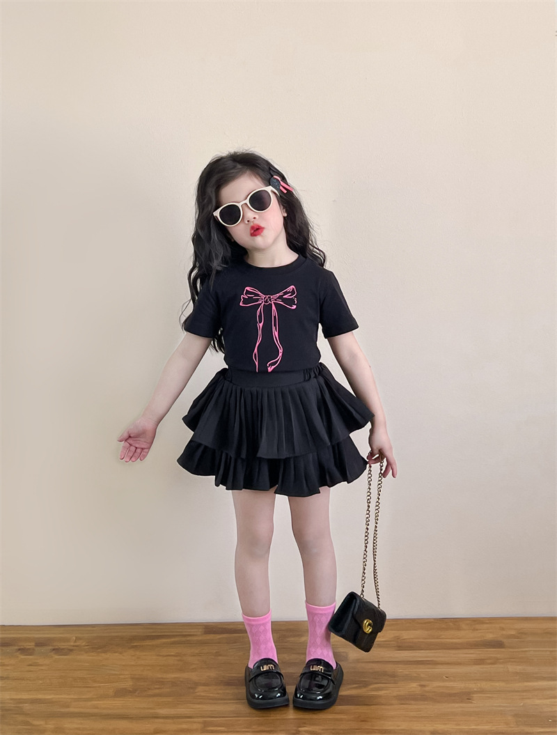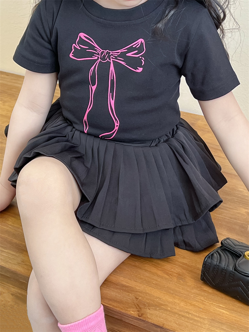 소녀 여름 달콤한 블랙 반팔 활 티셔츠 블랙 하이 허리 퍼프 케이크 스커트 트렌디 스커트스토어 가기