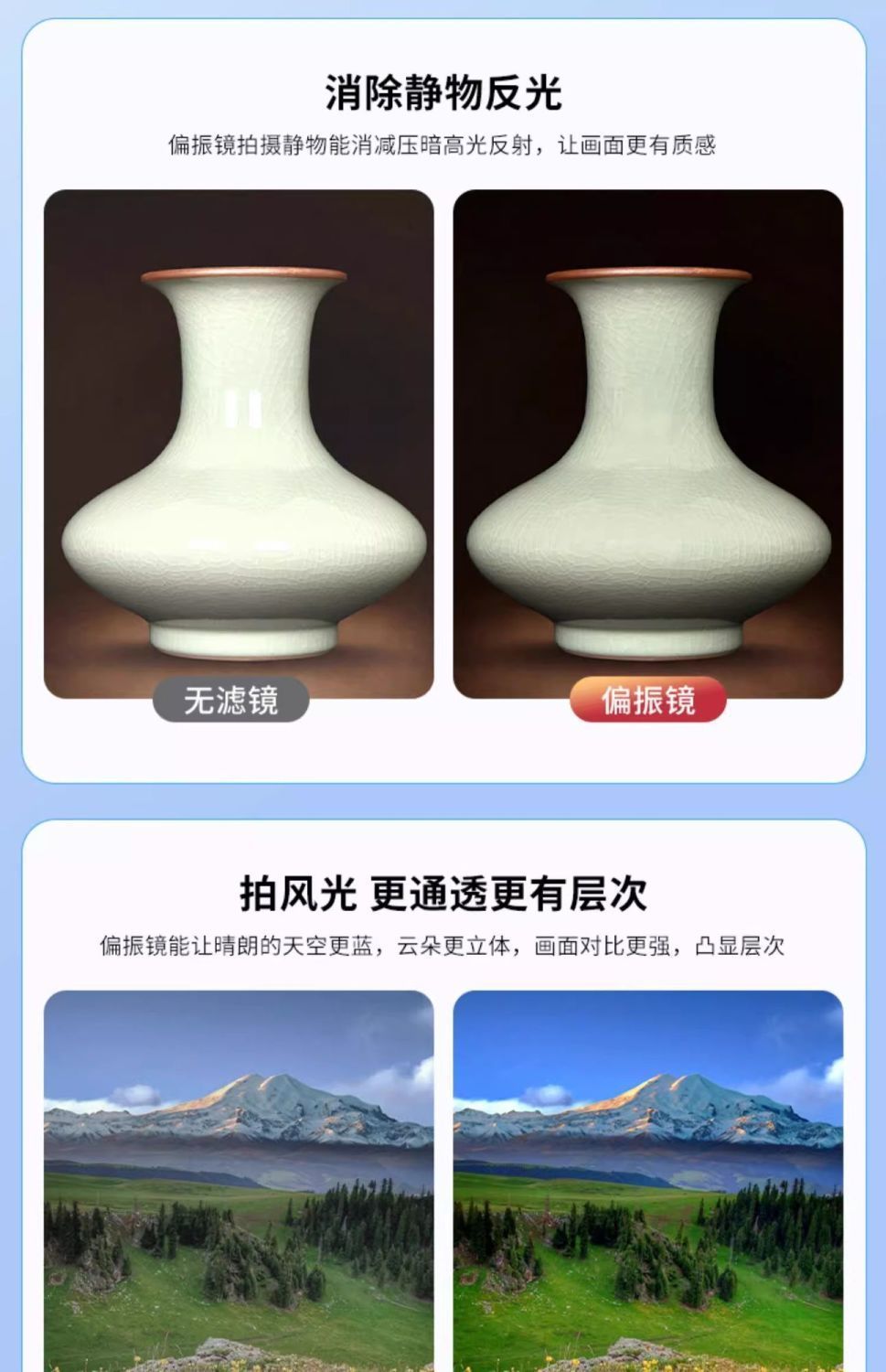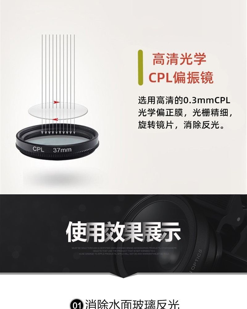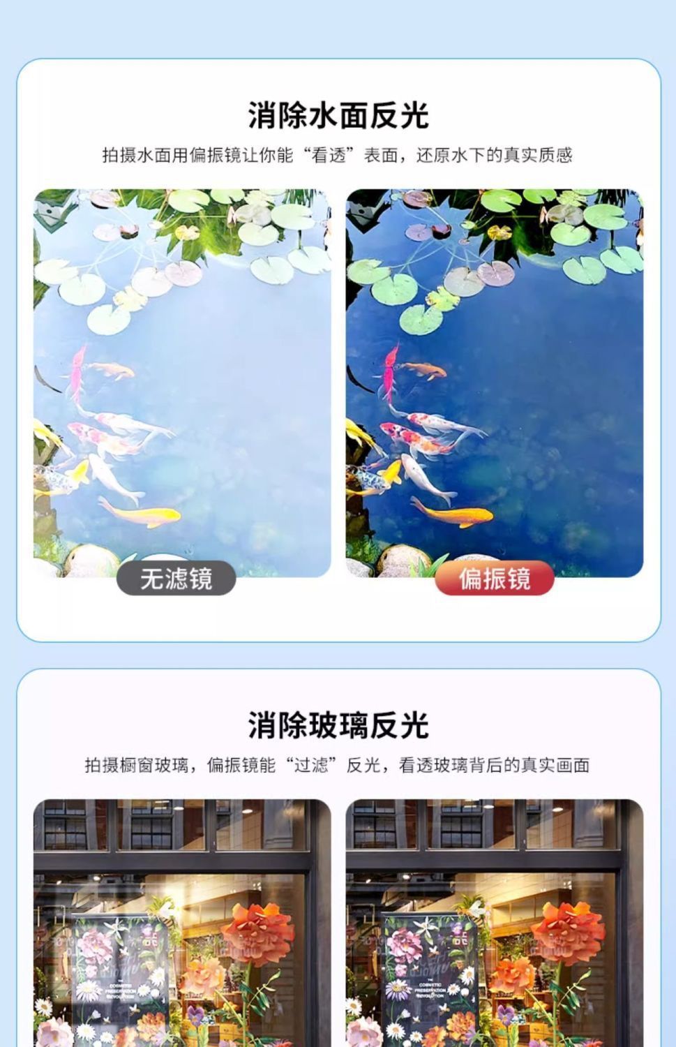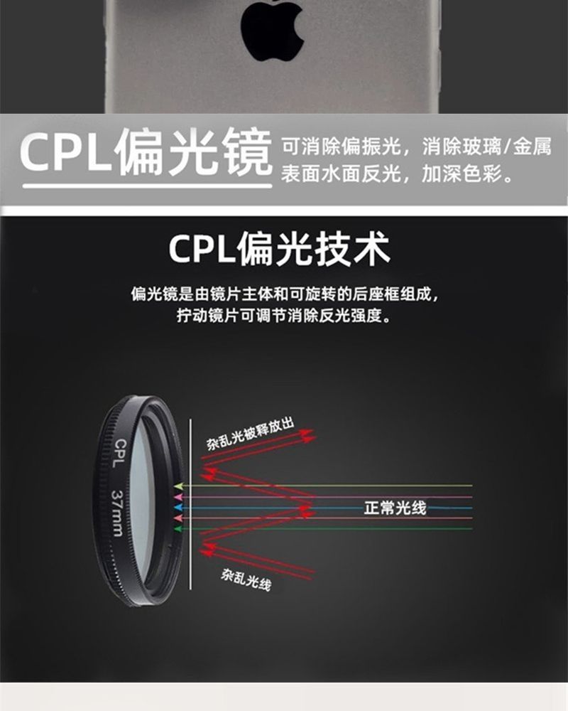 반사 렌즈 52 HD 사진 휴대 전화 편광 편광 클립 편광판 제거 필터스토어 가기