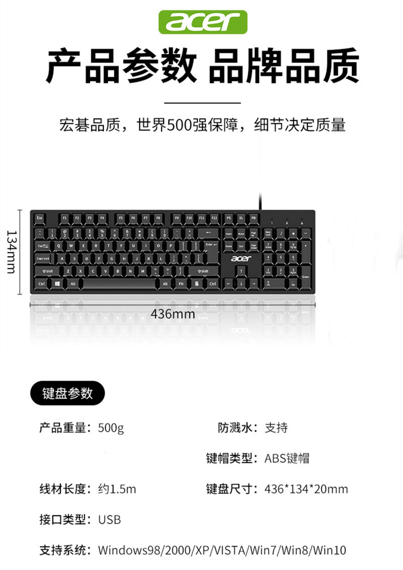 Acer Acer K-212B 유선 USB 키보드 노트북 데스크탑 컴퓨터 키보드 및 마우스 세트 홈 오피스에 적합스토어 가기