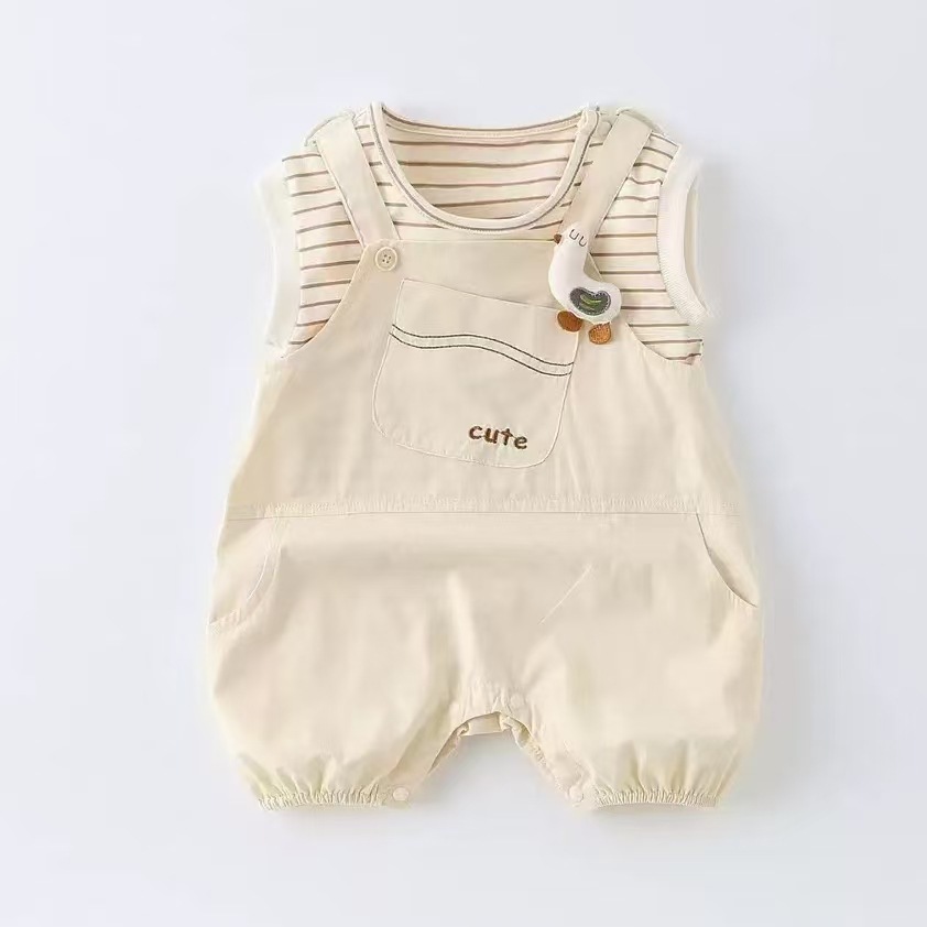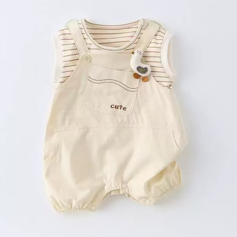 유아 여름 옷 2025 새 아기 세트 줄무늬 반팔 멜빵 한국 투피스 의상