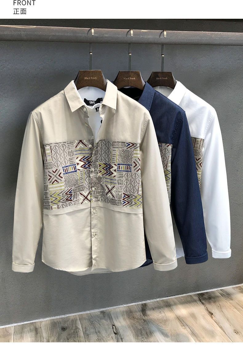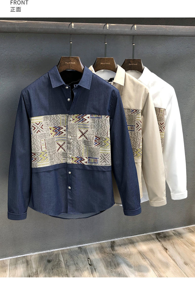 디자인 봄, 가을 남성 셔츠 남성 긴팔 한국식 일본식 스플리싱 셔츠 잘 생긴 캐주얼 탑스토어 가기