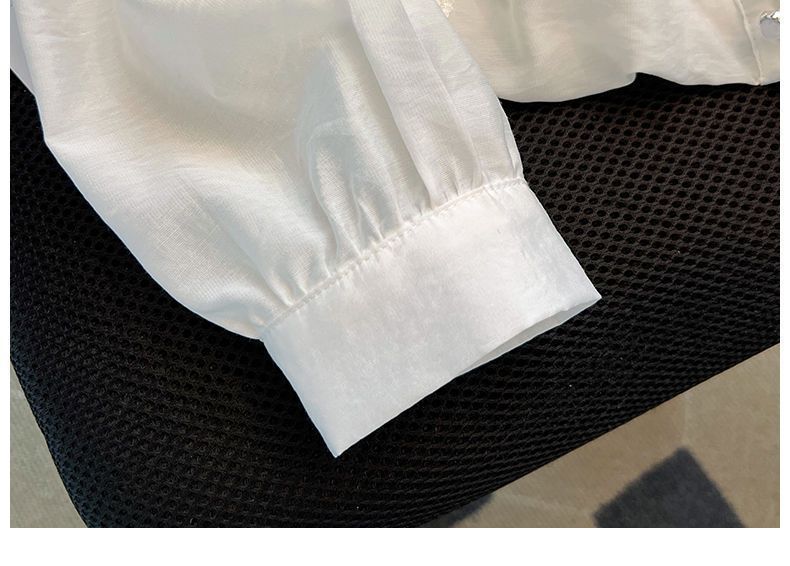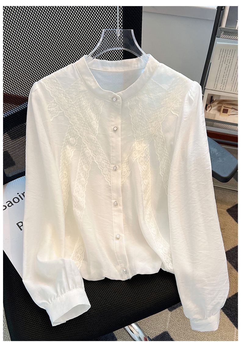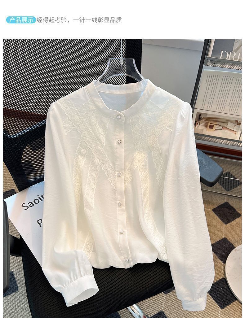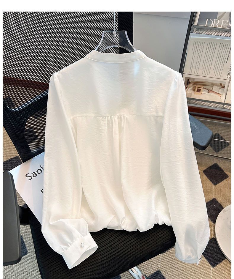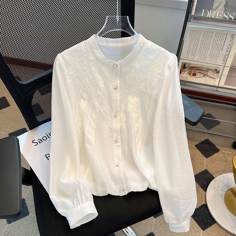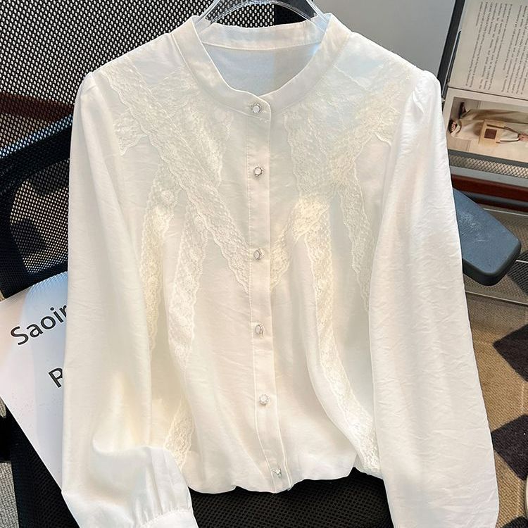 슈퍼 니스 화이트 긴 소매 셔츠 여성의 봄 2025 새로운 슈퍼 파이어 프렌치 퍼프 슬리브 탑 아름다운 작은 셔츠스토어 가기